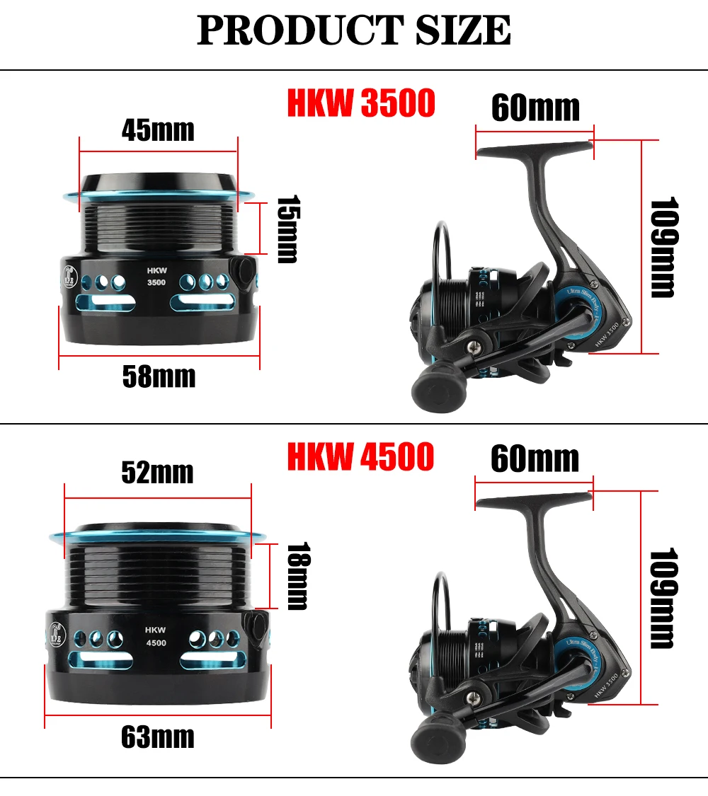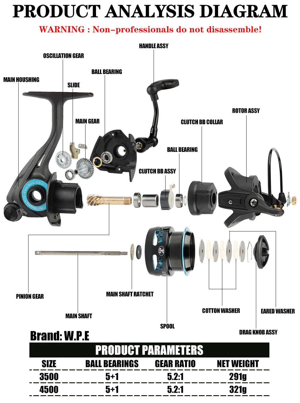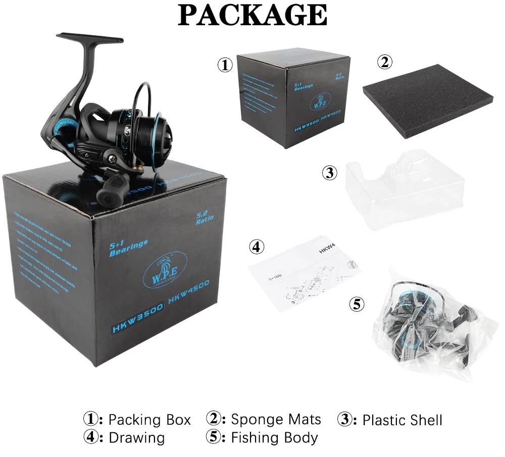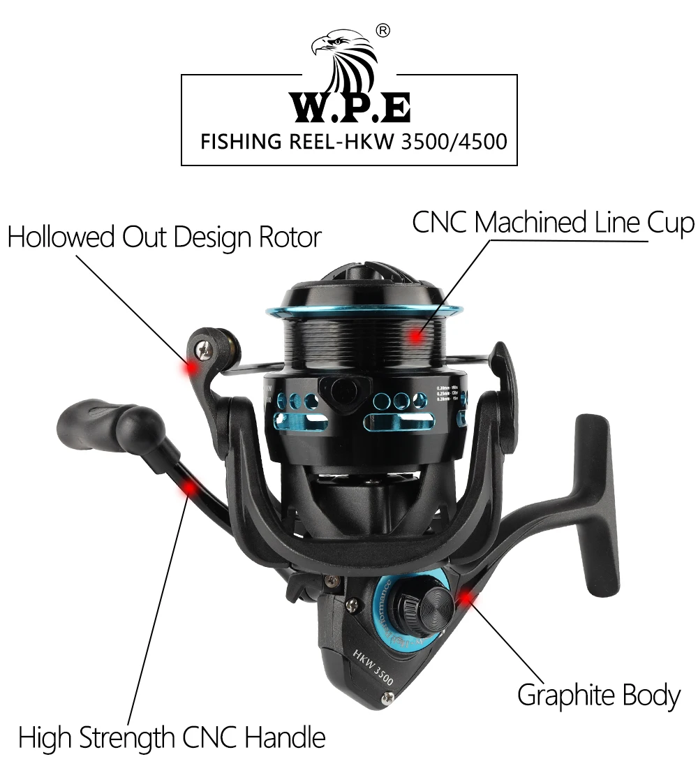 W.P.E-carrete de pesca giratorio 3500/4500 HKW, aparejo de Metal, relación de engranaje de alta velocidad 5 + 1 BBs, 5,2: 1