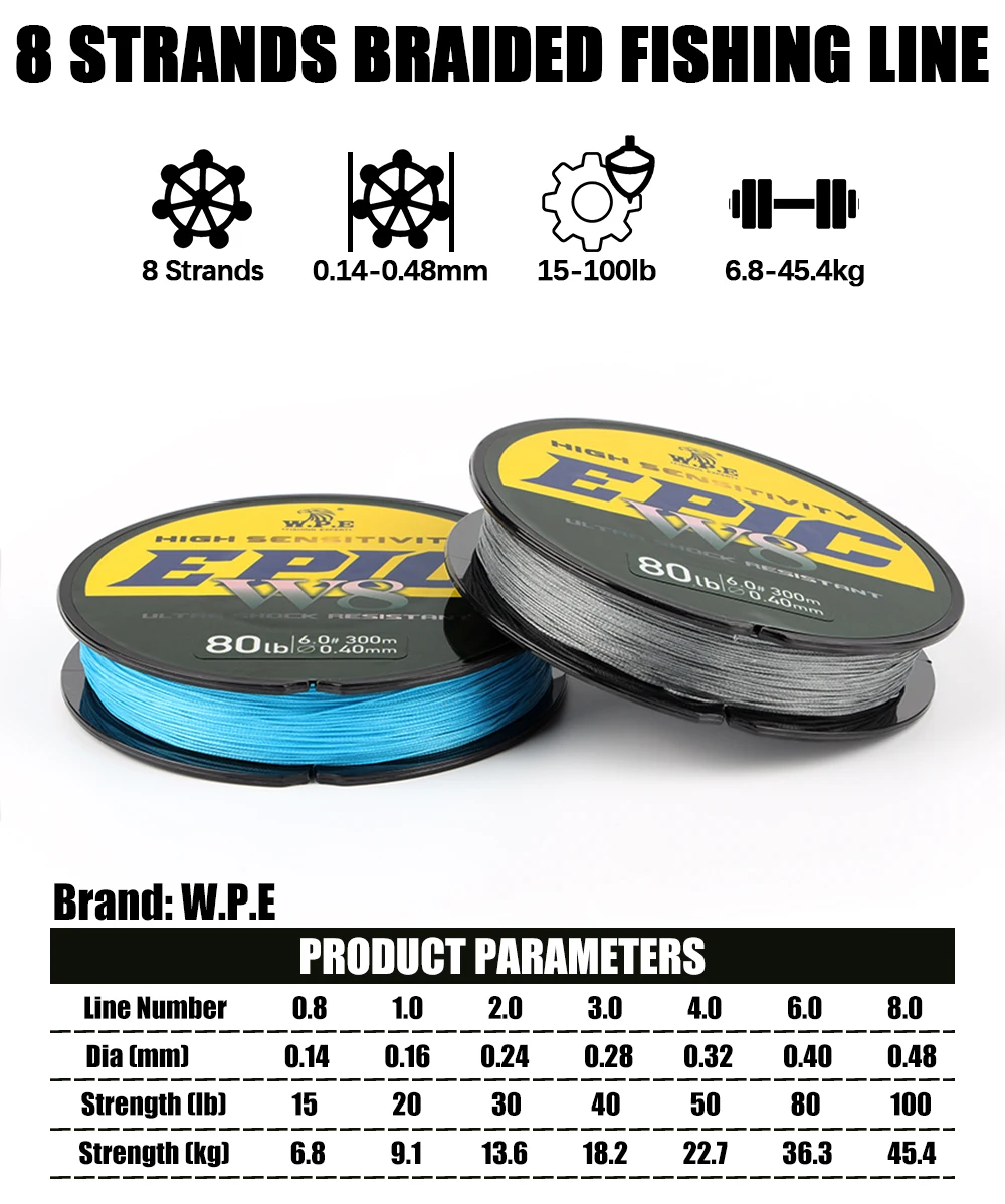 Prueba de línea (LB): 15; 20; 30; 40; 50; 80; 100