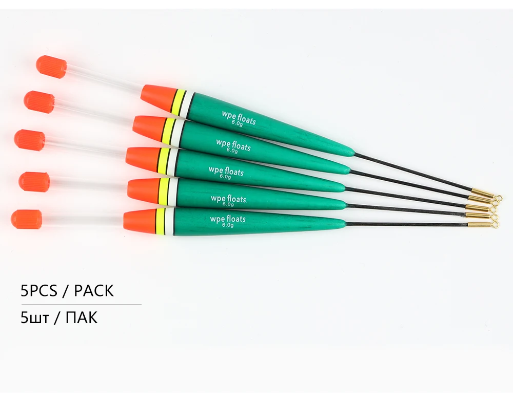 W.P.E-flotador de pesca de carpa, 5 unids/paquete, 6g, 18-22cm, boya Vertical, aparejos de pesca Bobber