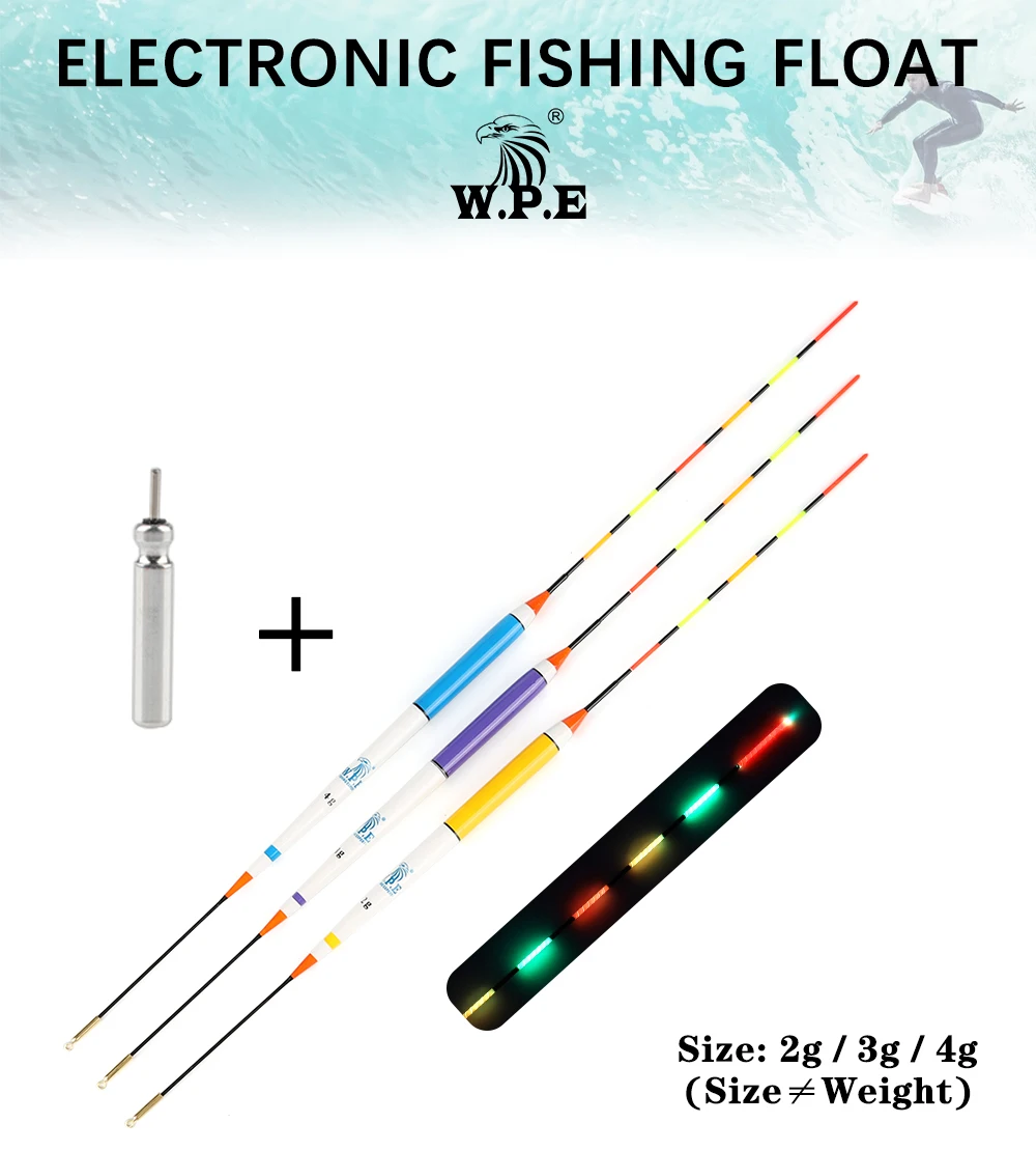 W.P.E-flotador de pesca nocturno inteligente con luz LED, 1 unidad, 2g-4g, 34-38cm