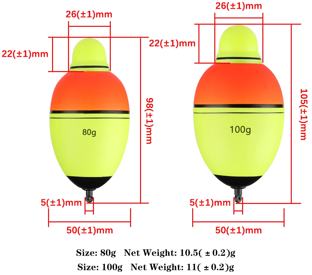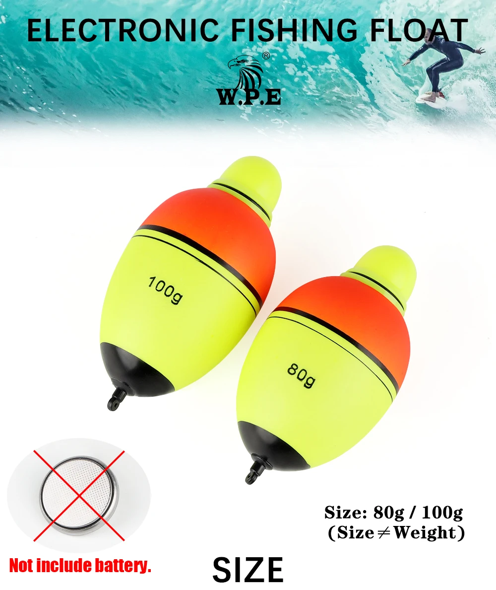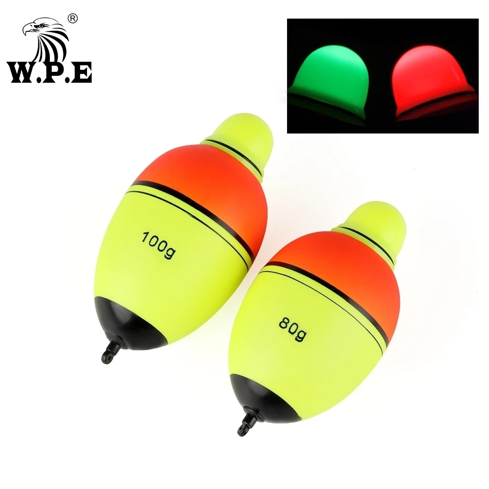 W.P.E-flotador de pesca piezas, 80g/100g, luz LED intercambiable, flotador de pesca electrónico nocturno, EVA, flotador suave y luminoso, aparejos de pesca