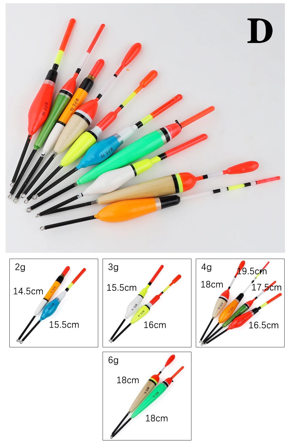 W.P.E-flotador de Pesca de tamaño 1g-6g, boya Vertical de abeto Barguzinsky, aparejos de Pesca, 10 unids/lote por paquete
