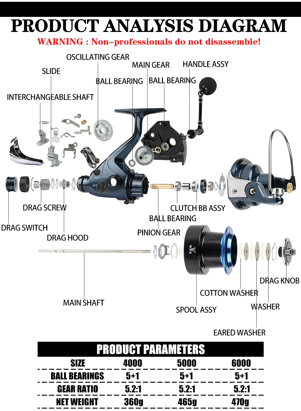 W.P.E KFT-carrete de Pesca giratorio 4000/5000/6000, alta velocidad, relación de engranaje 5,2: 1, rodamientos de bolas 5 + 1, aparejos de Pesca