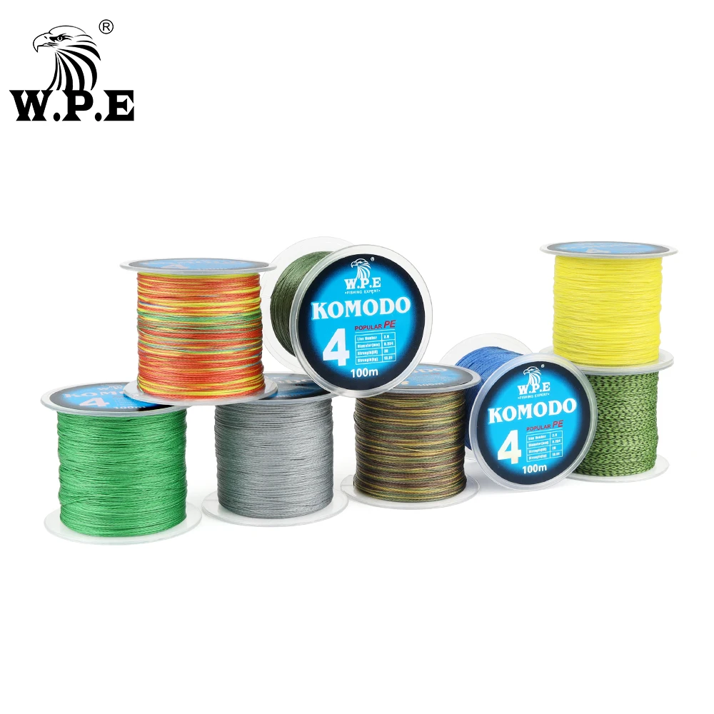 W.P.E KOMODO-línea de pesca trenzada de 4 hebras, 100m, 0,6 #-4,0 # PE, 10lb-40lb, aparejos de línea de pesca de hundimiento