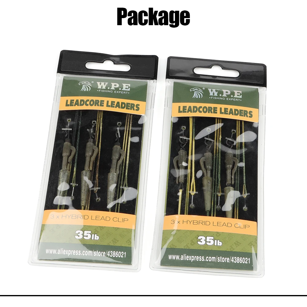 W.P.E-línea de Pesca de carpa trenzada con núcleo de plomo, aparejo para el pelo, Clip de plomo, conector giratorio, alimentador, aparejos de Pesca de carpa, 3 unids/paquete