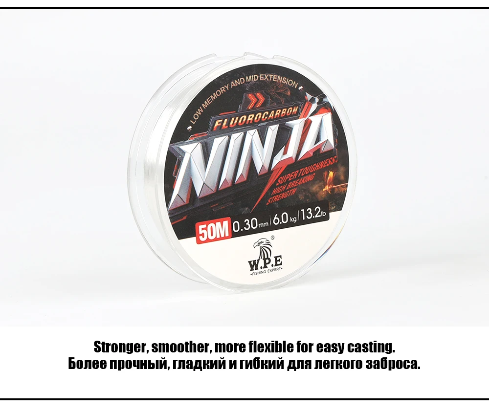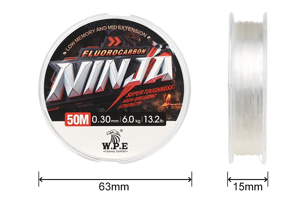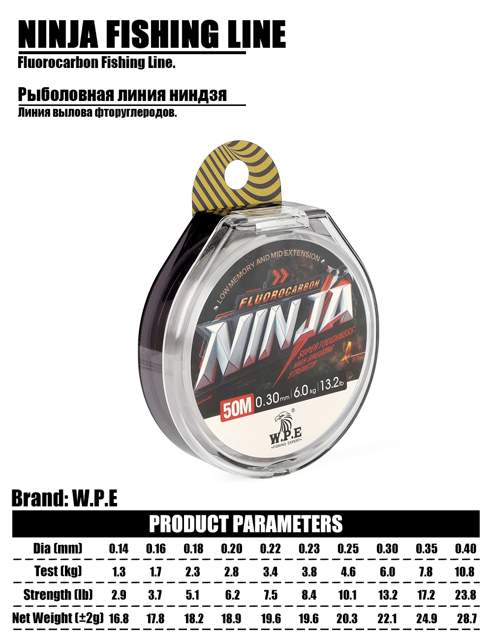 W.P.E-línea de pesca de fibra de carbono, aparejos de línea de pesca de fluorocarbono, 014mm-0,40mm, 1,3 kg-10,8 kg, 2.9lb-23.8lb, 1 piezas