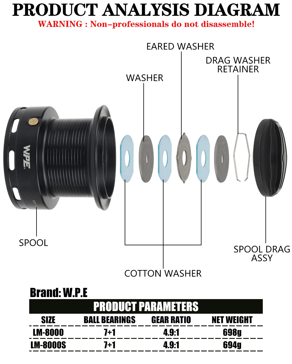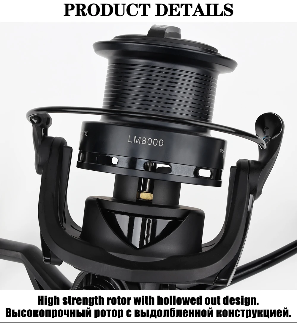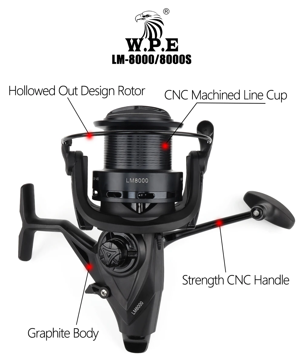 W.P.E LM 8000/8000S carrete de pesca de carpa 7 + 1 rodamientos de bolas 4,9:1 relación de engranaje carrete de pesca de carpa rueda de pesca aparejos de pesca