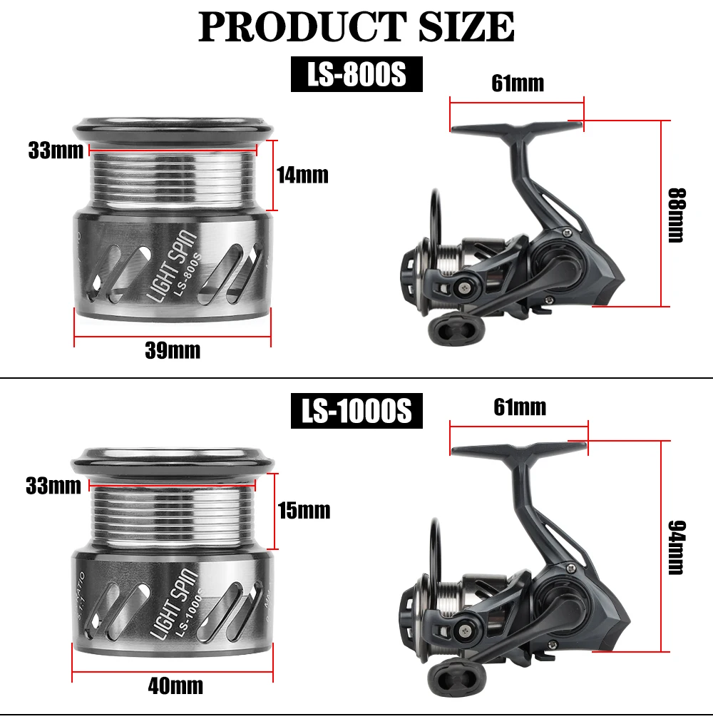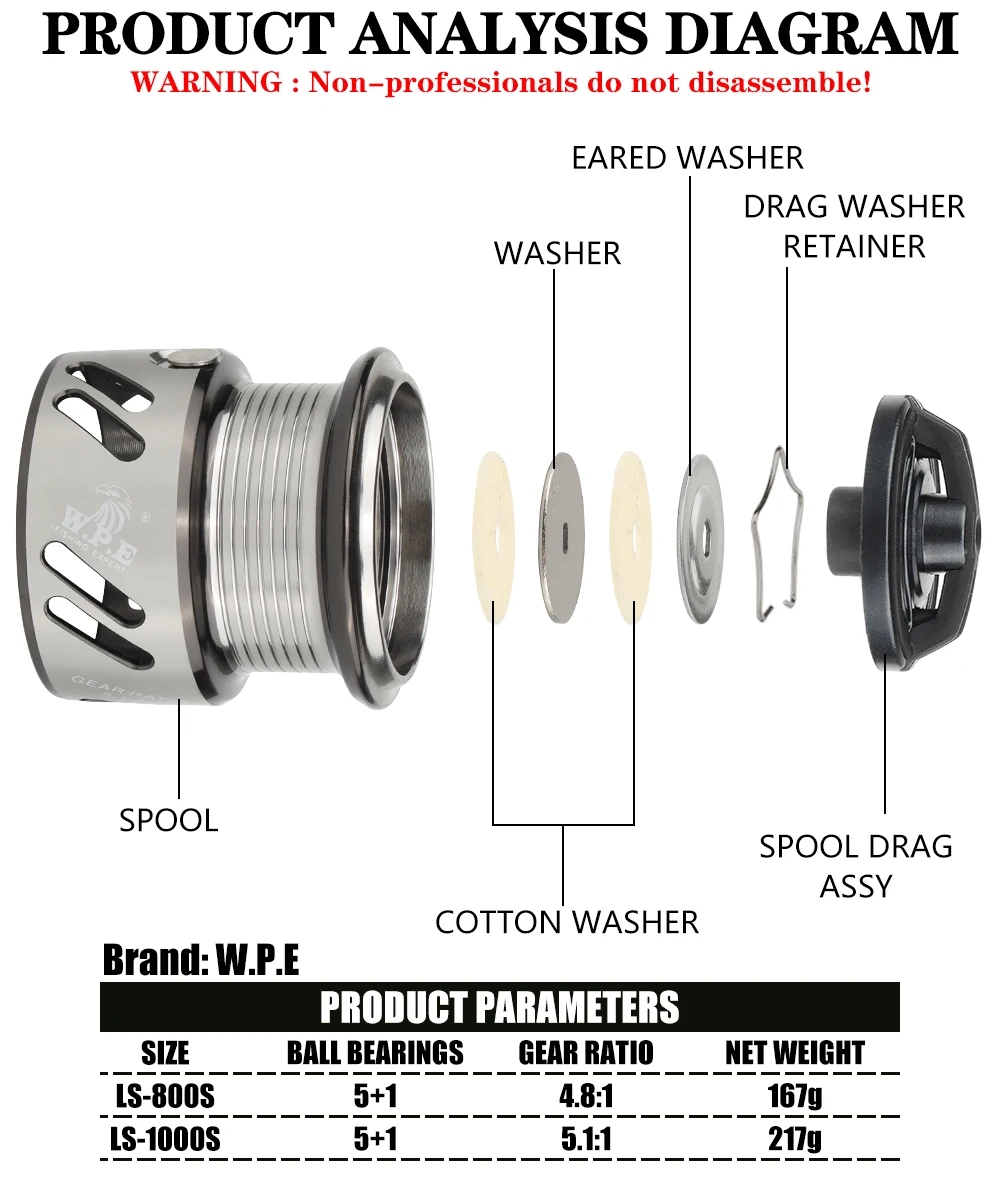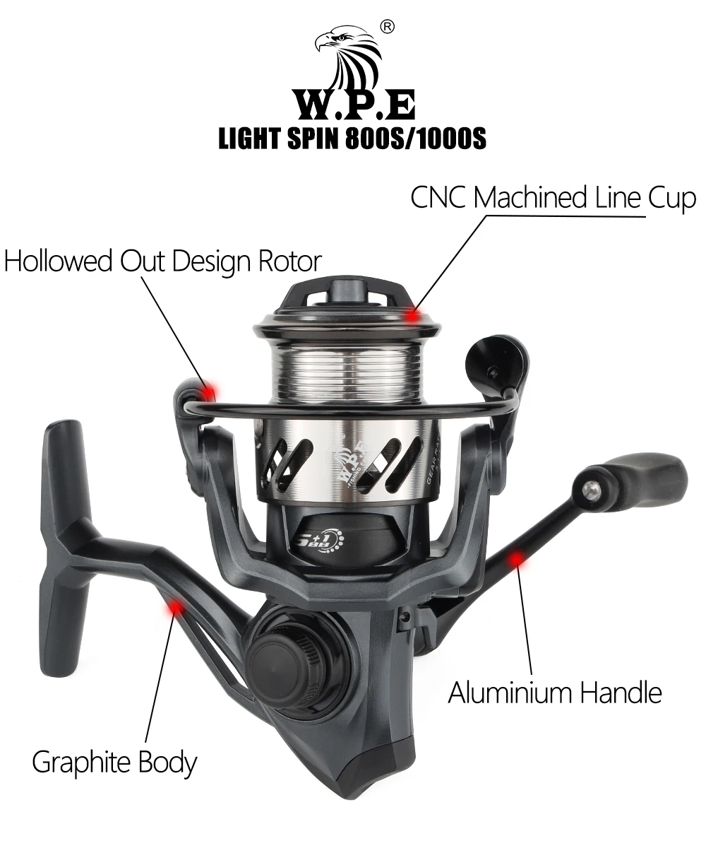 W.P.E LS-carrete de pesca giratorio 800S/1000S, carrete de cuerpo ligero, 5 + 1, rodamientos de bolas 4,8: 1/5, 1:1, relación de engranaje, carrete de línea de Metal