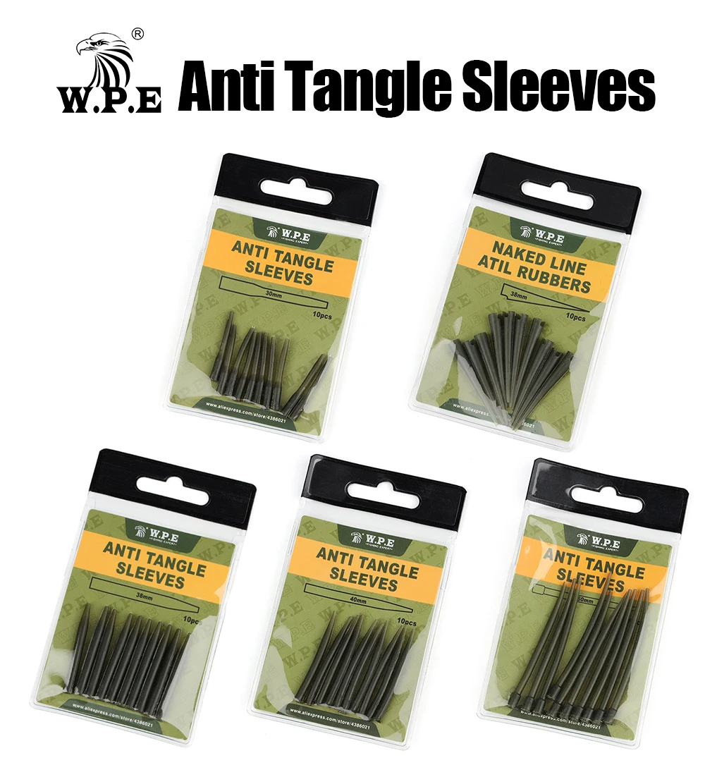 W.P.E-Mangas antienredos para pesca de carpa, línea desnuda, gomas de Atil, tubo de aparejo para el pelo, conector giratorio, Terminal, aparejos de pesca de carpa, 10 Uds.