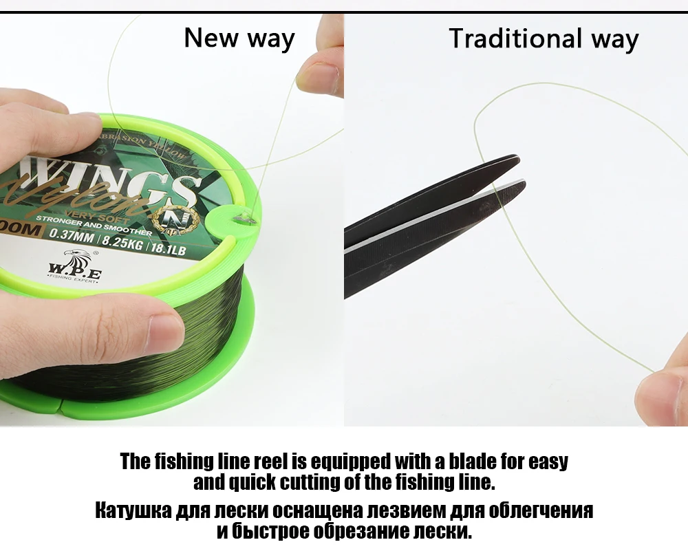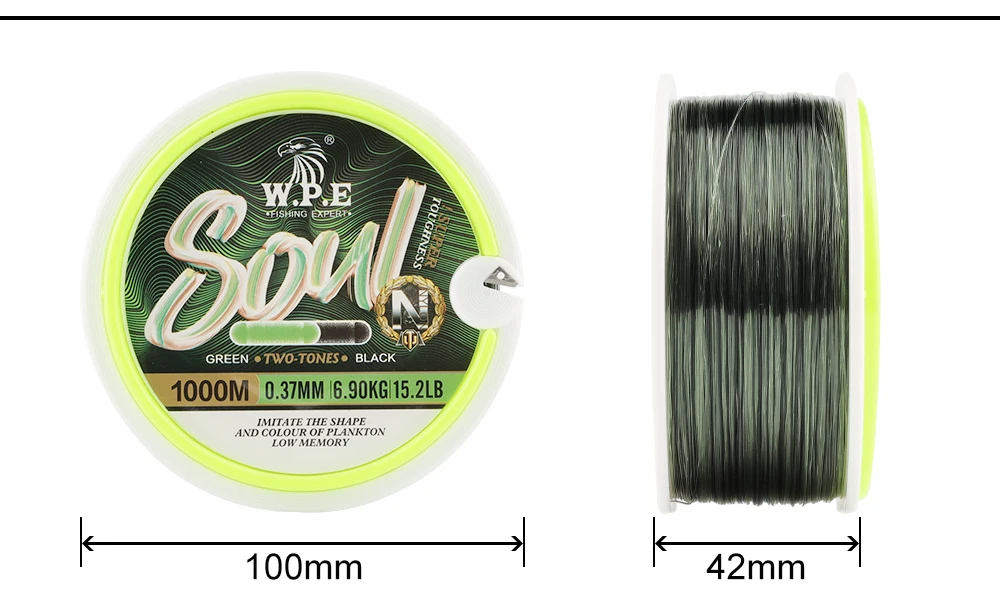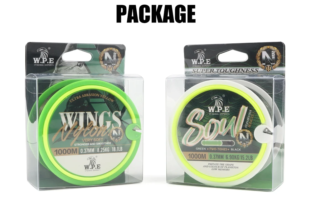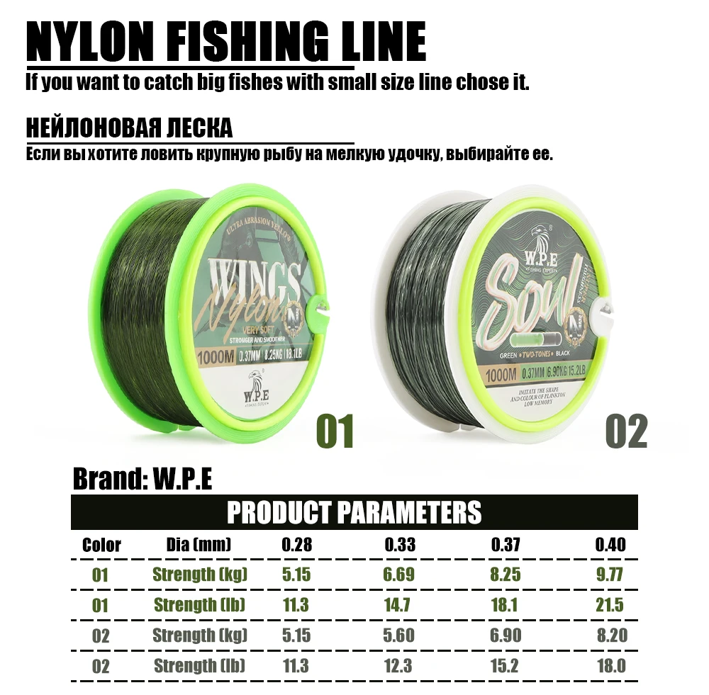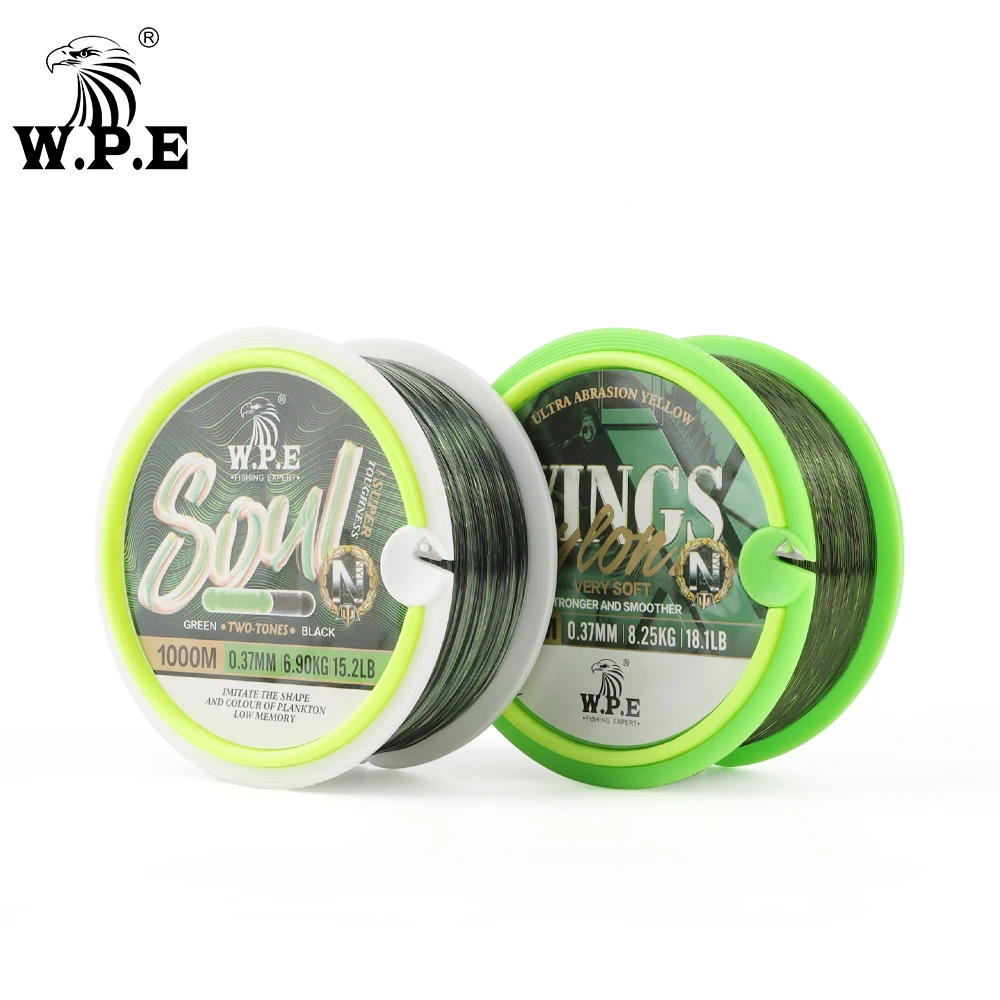 W.P.E-sedal de pesca de nailon de 1000m, hilo de pesca de monofilamento de 0,28mm-0,40mm, 11,3 LB-25lb, alimentador de carpa, aparejos de alambre de pesca con mosca