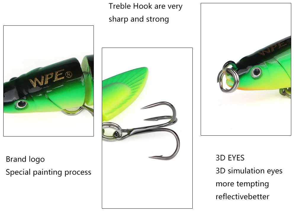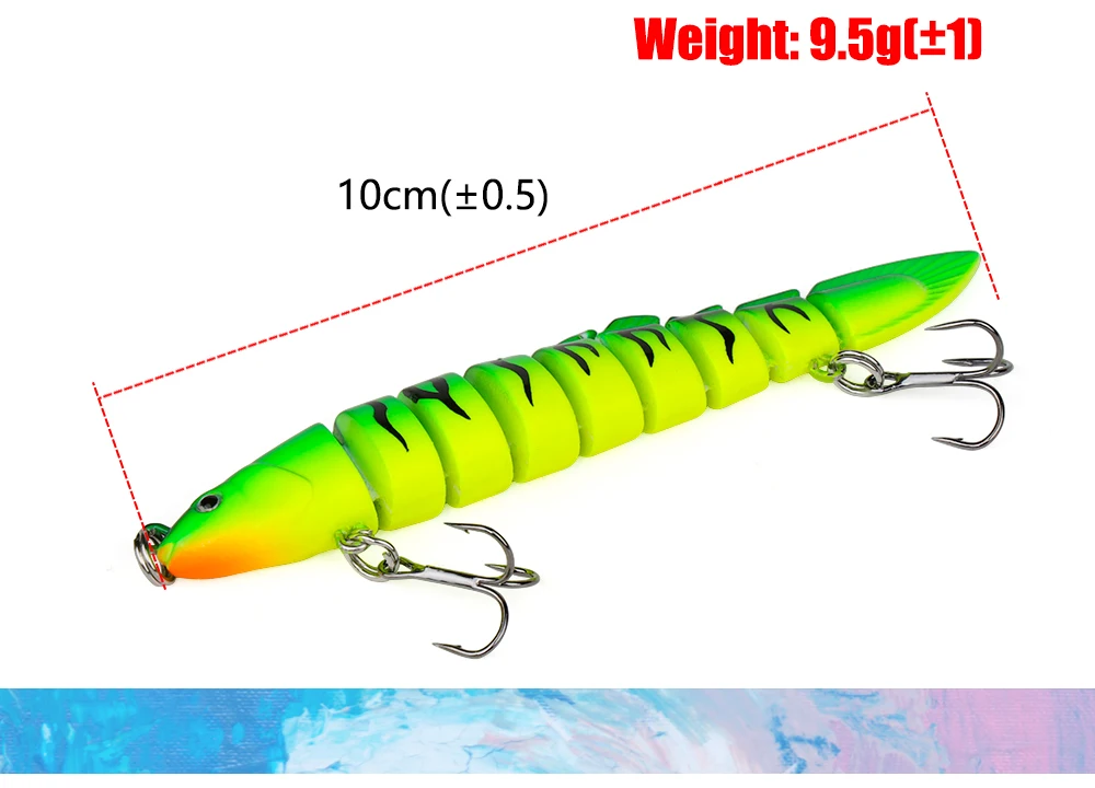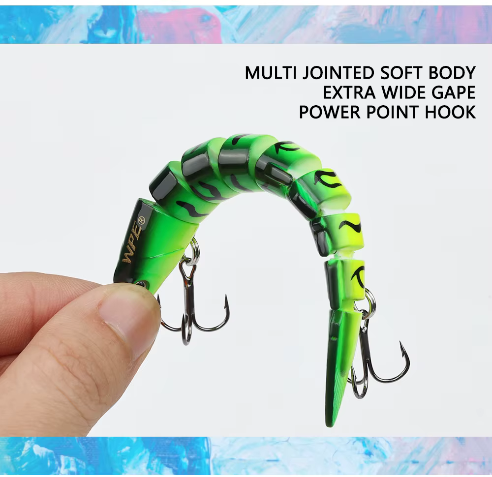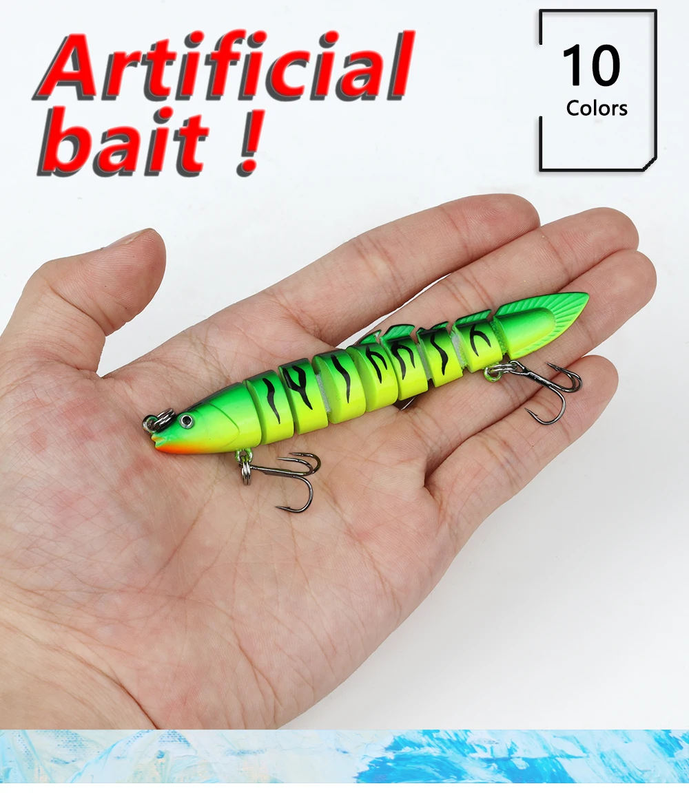W.P.E-señuelo de pesca de cuerpo Multi articulado, 1 piezas, 100mm, Swimbait, señuelo de plantilla de lubina, señuelo falso con anzuelo triple, aparejos de pesca