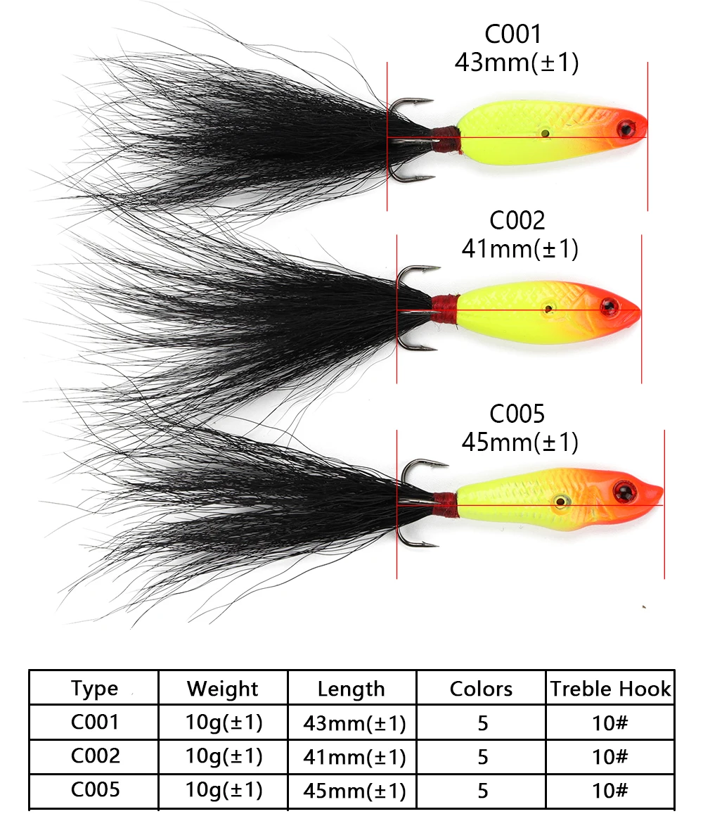 W.P.E-señuelo de pesca duro de invierno, cebo Artificial para Jigging de plomo, anzuelo triple Wobbler, 1 pieza, 10g, 15 colores, 41mm-45mm