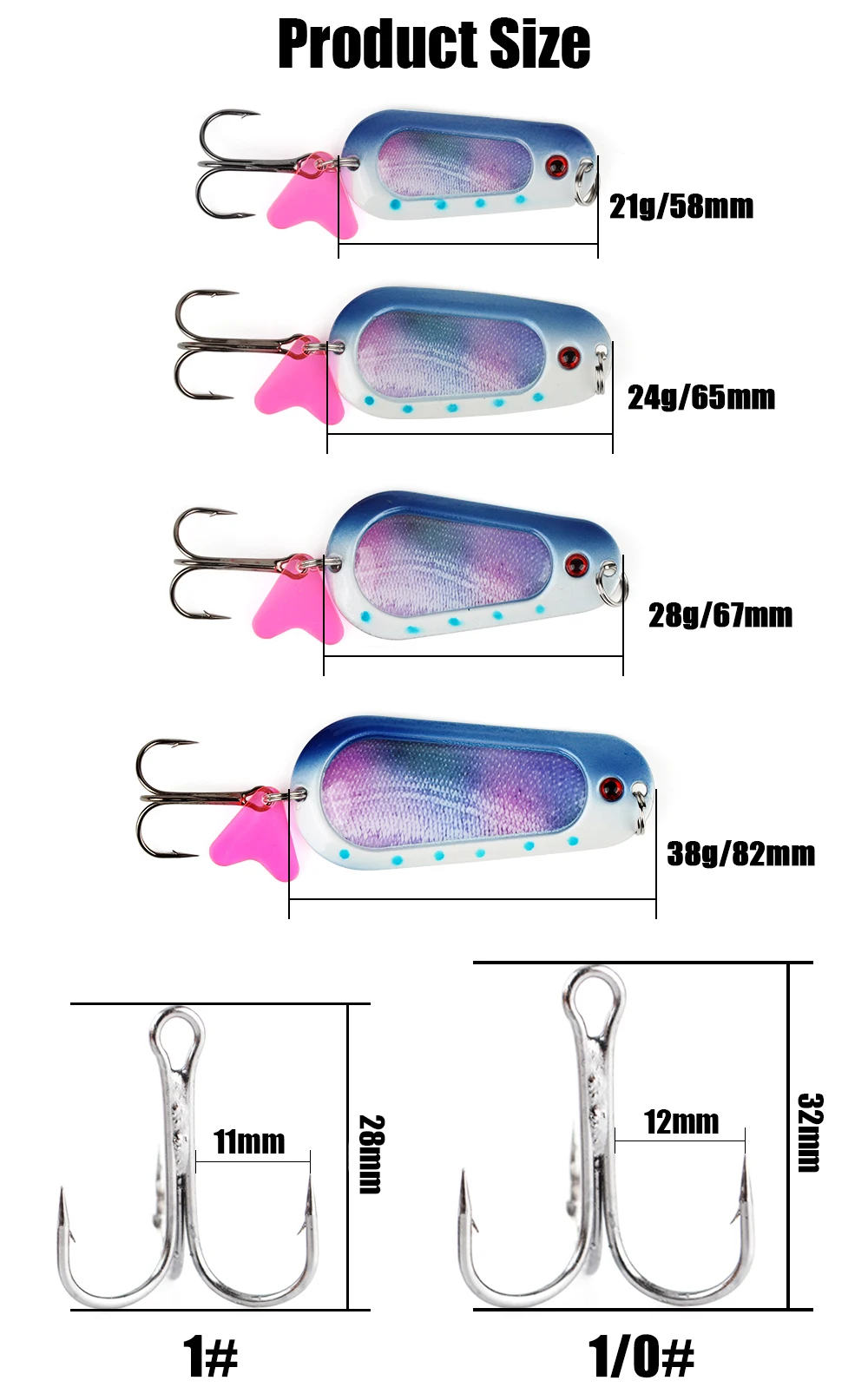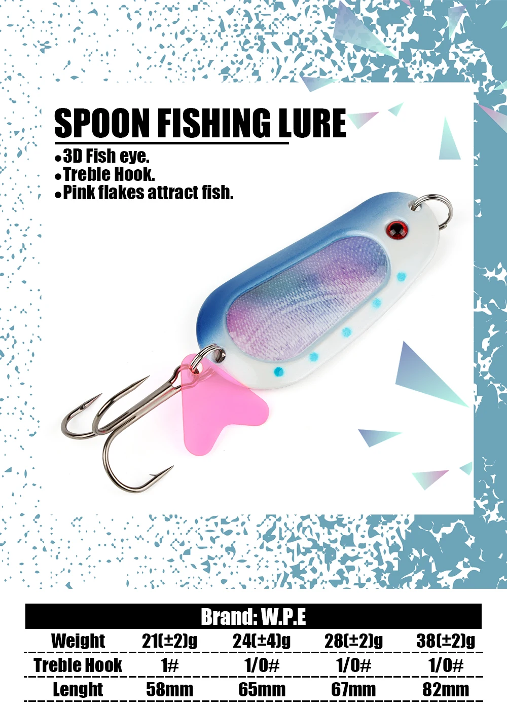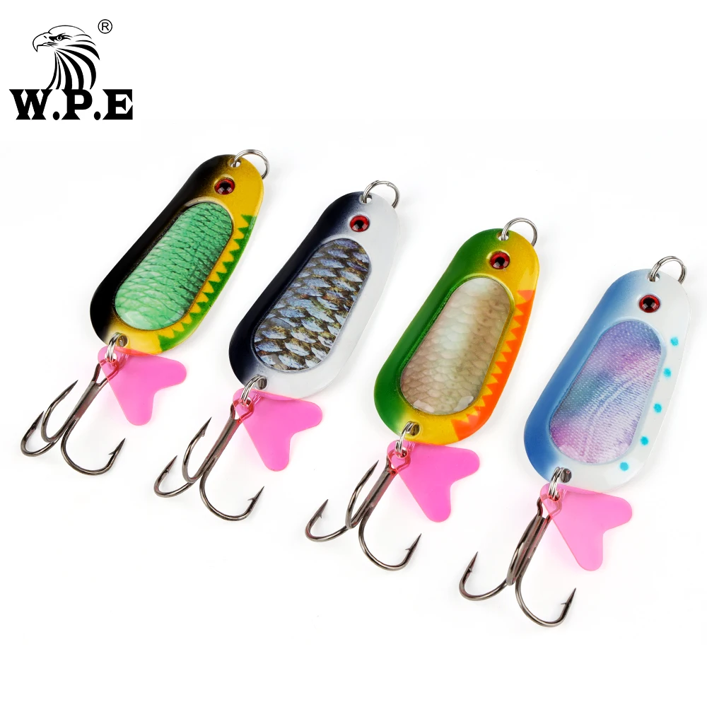 W.P.E-señuelo de pesca giratorio de 21g/24g/28g/38g, señuelo de cuchara dura de Metal, aparejos de pesca de Lucio, cebo artístico, anzuelo triple