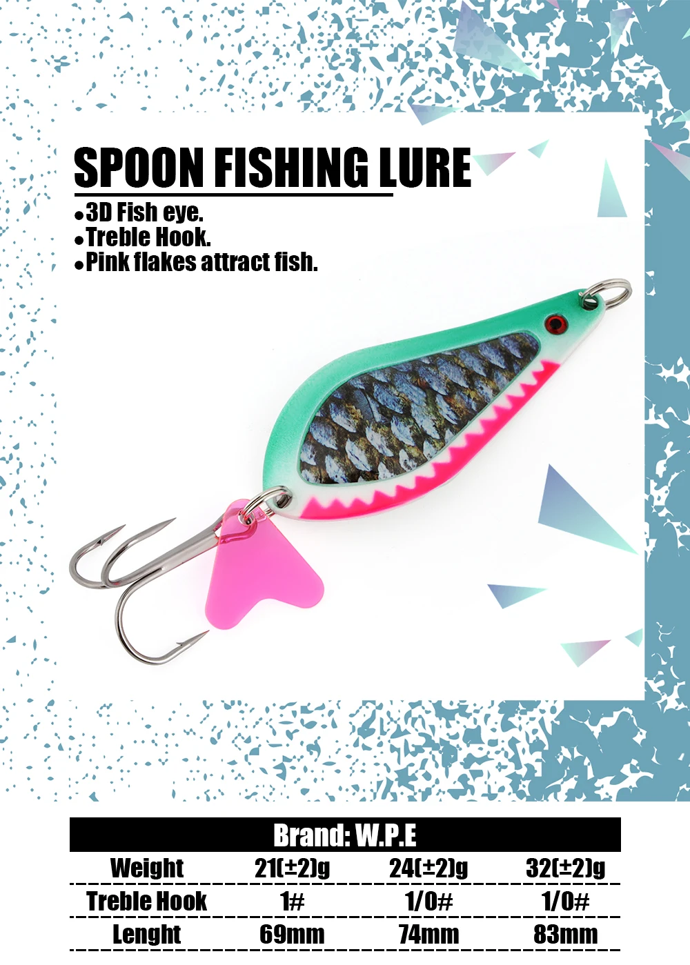 W.P.E-señuelo de Pesca giratorio, cebo Artificial de 21g/24g/32g, cuchara de Metal, Lucio, trucha, aparejos de Pesca, 1 ud.