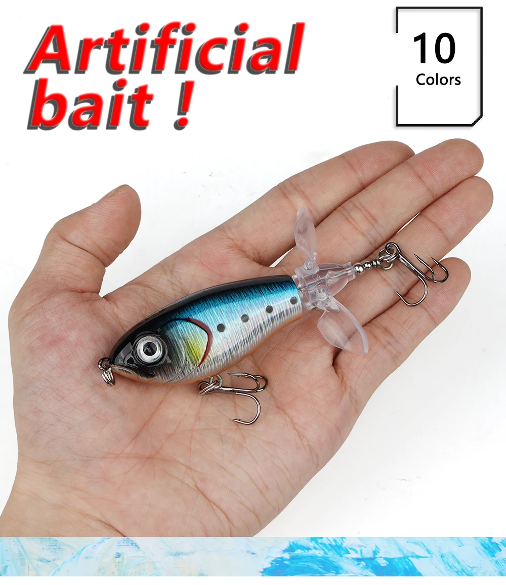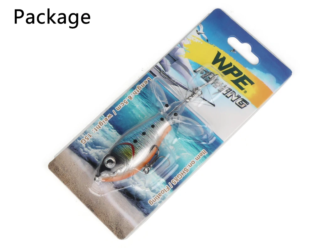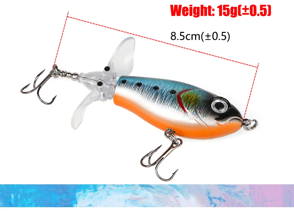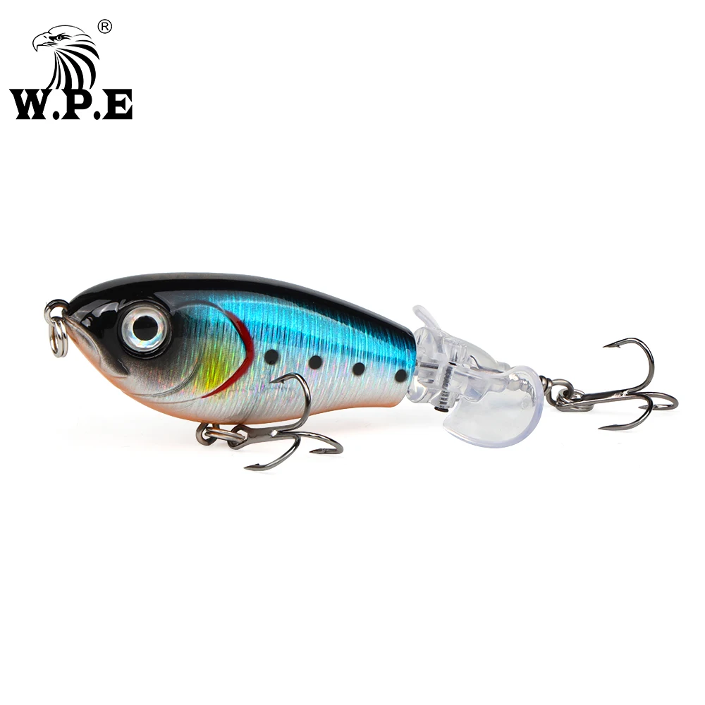 W.P.E-señuelo de pesca de piezas, señuelo flotante de 85mm y 15g, Swimbait de superficie, duro, cola giratoria con anzuelo triple afilado, aparejos de pesca