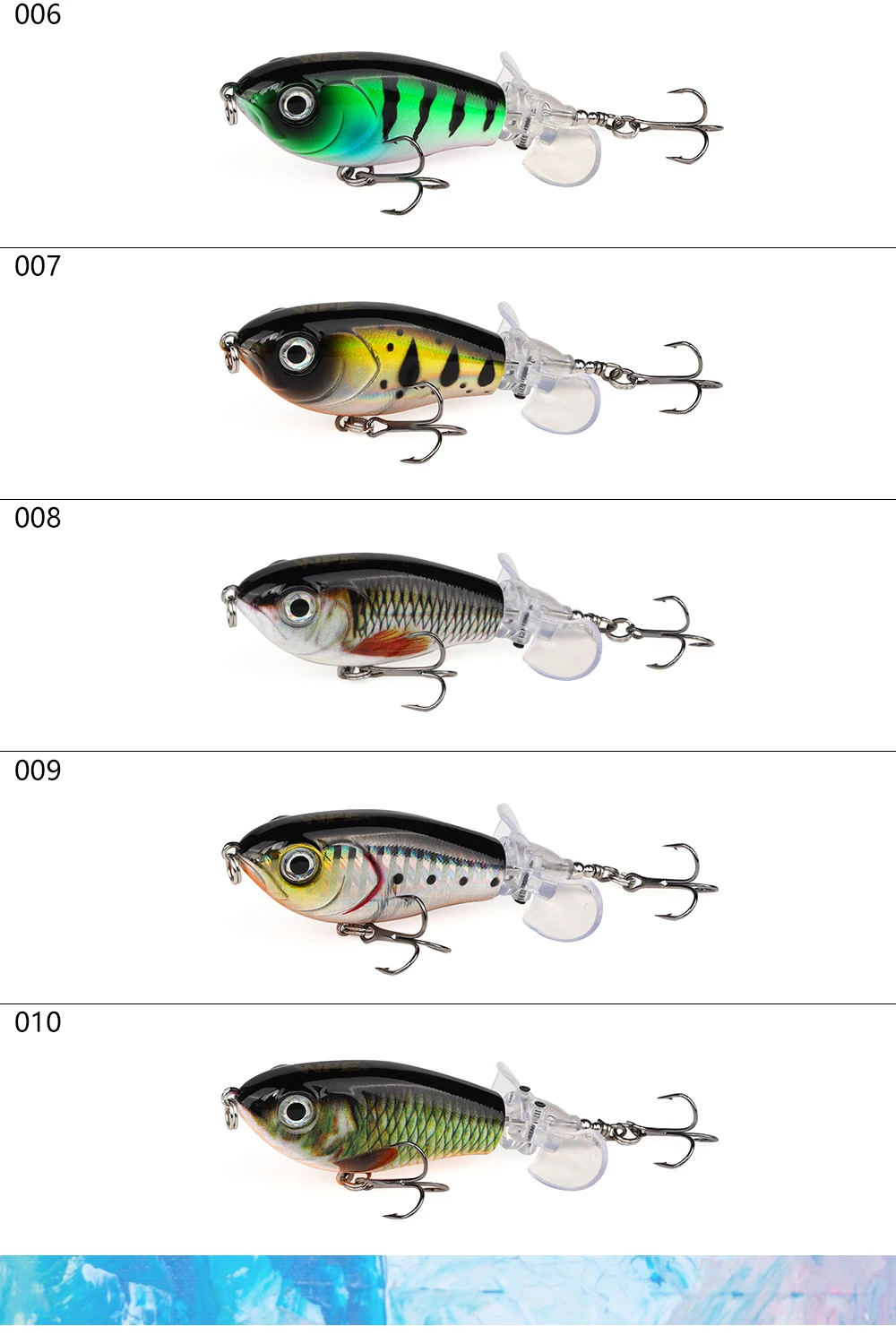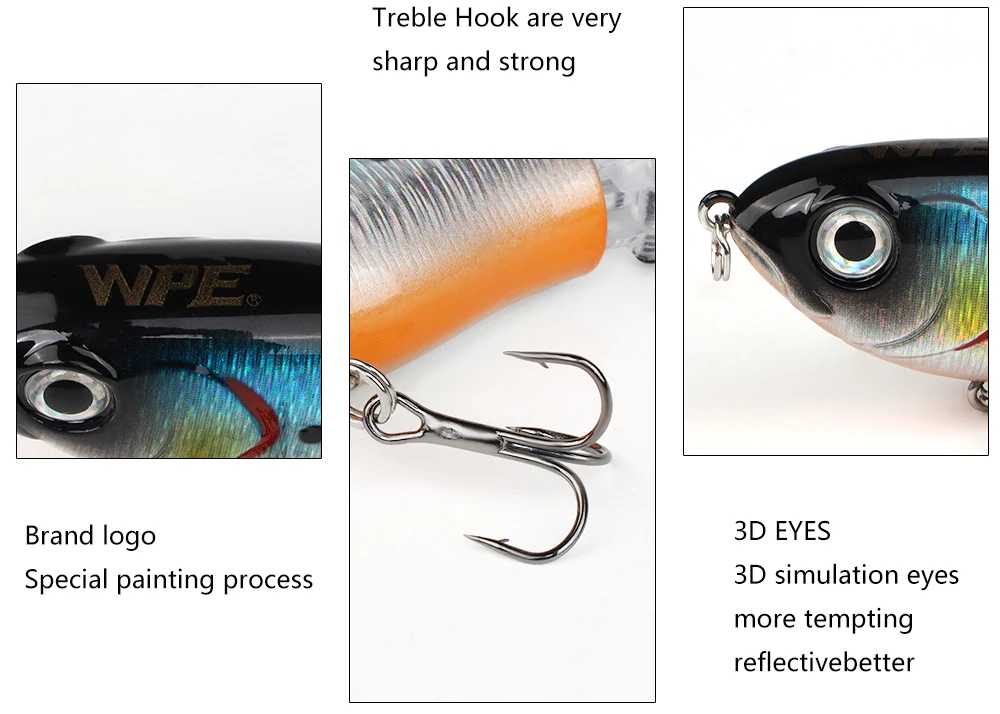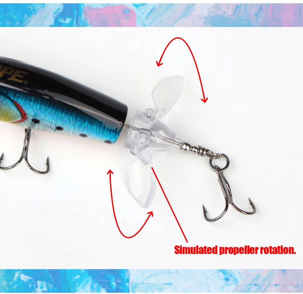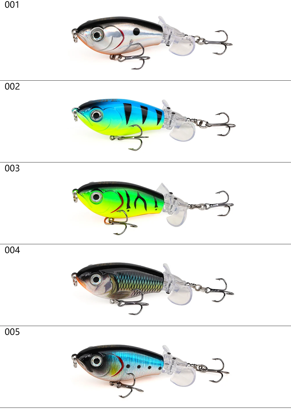 W.P.E-señuelo de pesca de piezas, señuelo flotante de 85mm y 15g, Swimbait de superficie, duro, cola giratoria con anzuelo triple afilado, aparejos de pesca