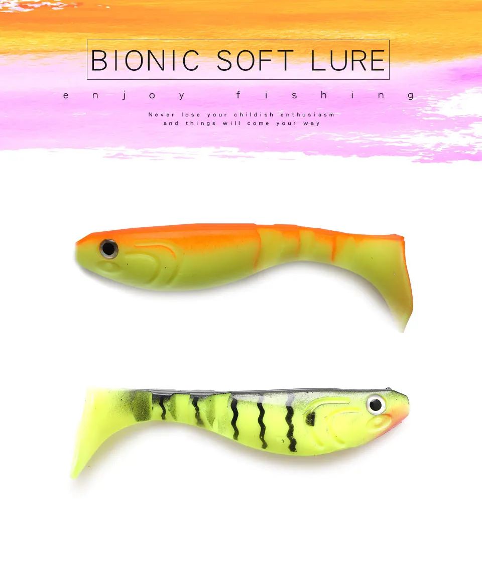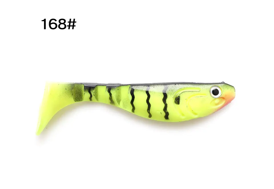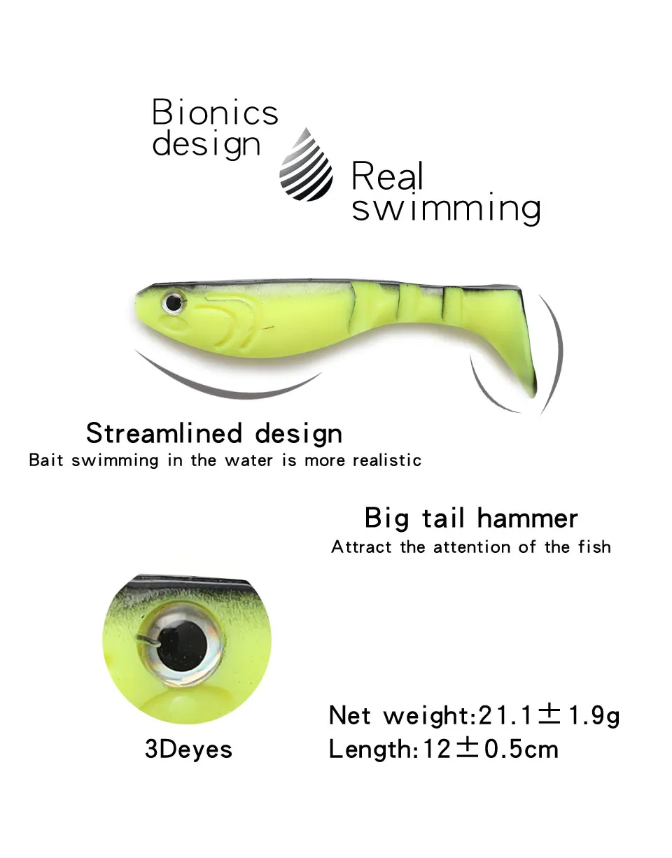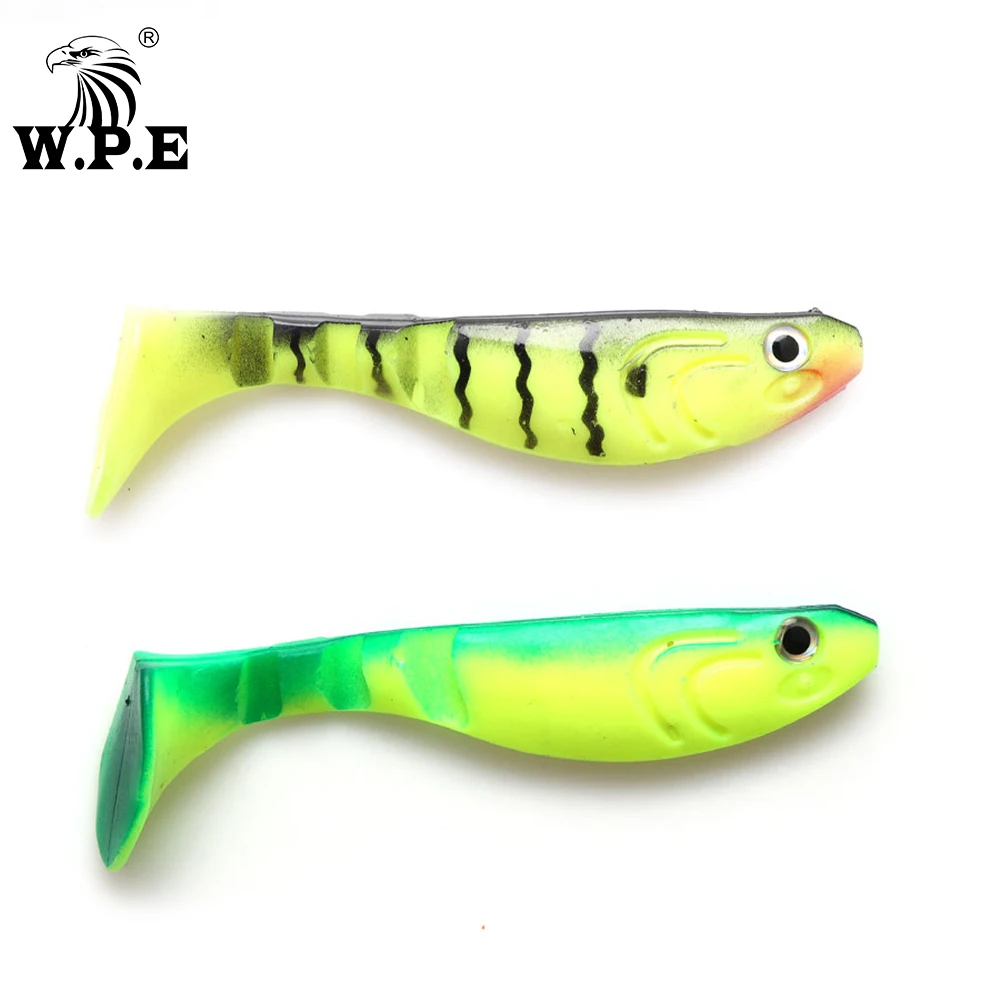 W.P.E-señuelo de pesca suave, cebo de silicona de goma Artificial, cabeza de plantilla de simulación, gusano de cola en T, Wobbler, 12cm, 4 unids/lote por paquete