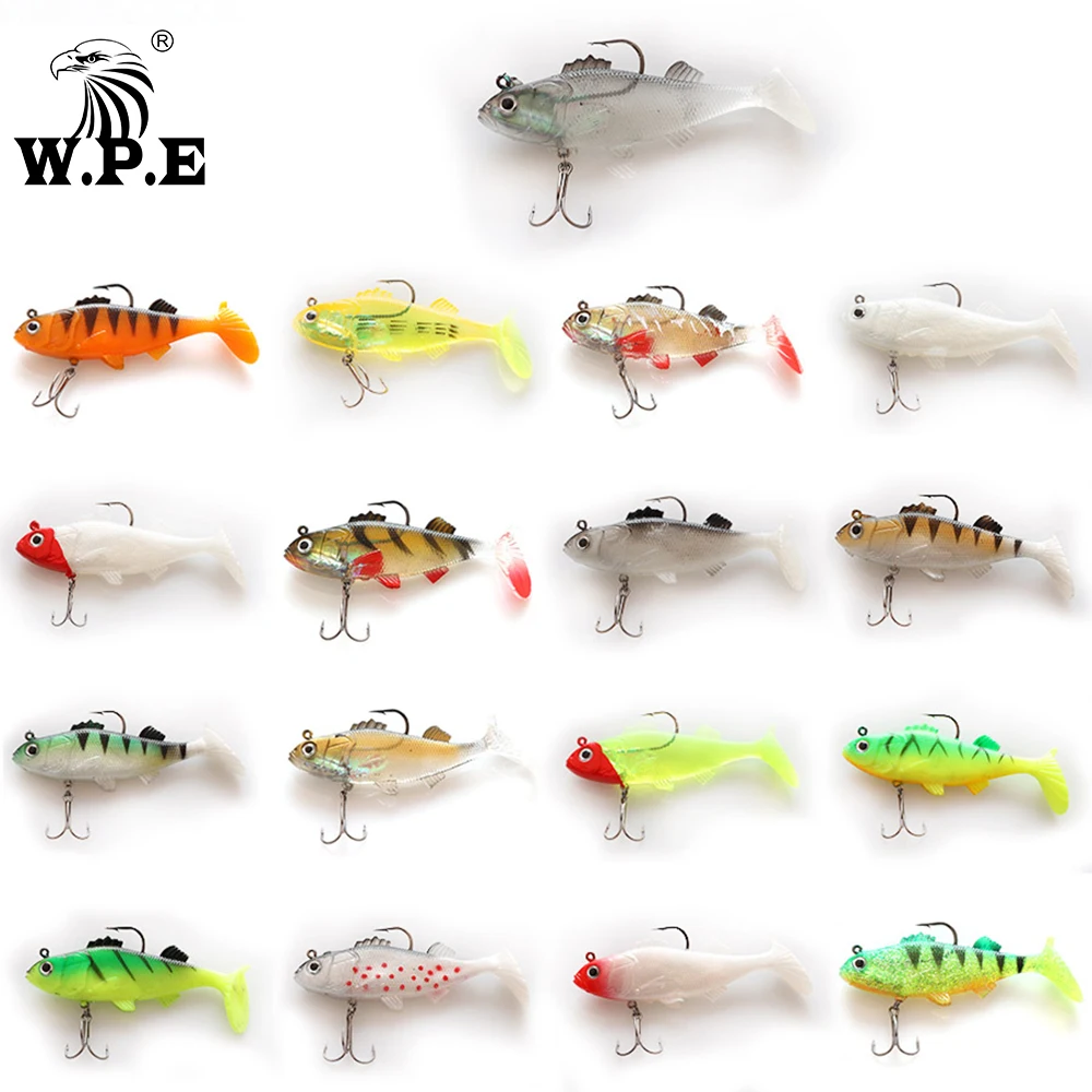 W.P.E-señuelo de pesca suave de silicona, señuelo de cabeza de plomo, 9/10/12cm, Swimbaits Wobblers, aparejos de pesca t-tail, 17 colores, 3-4 unids/paquete