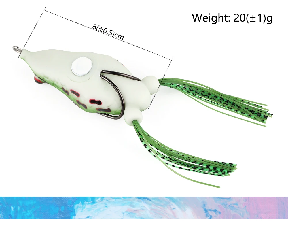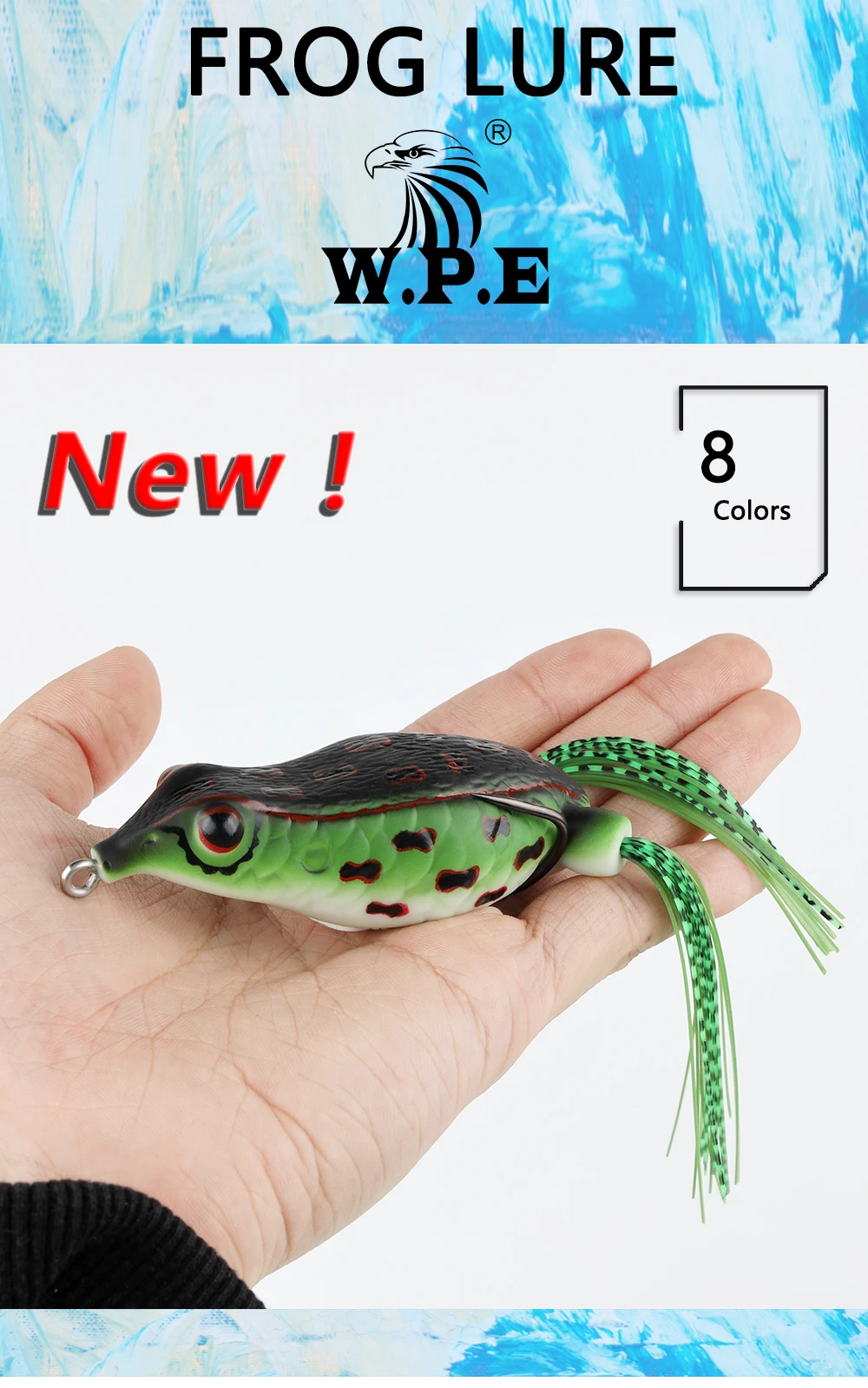 W.P.E-señuelo de rana de piezas, 8cm, 20g, Muliticolor, suave, Topwater, cabeza de serpiente, señuelo de lubina, tubo suave, Artificial, aparejos de pesca