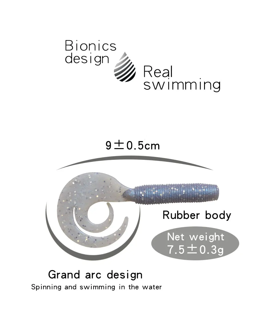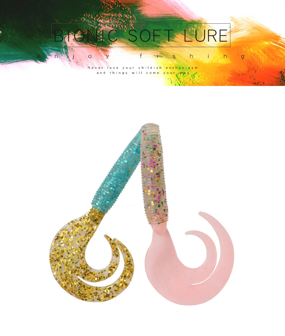 W.P.E-señuelo suave de silicona Multicolor, cebo de pesca de lubina, cabeza de plantilla, cola blanda, 90mm, 5 unids/lote