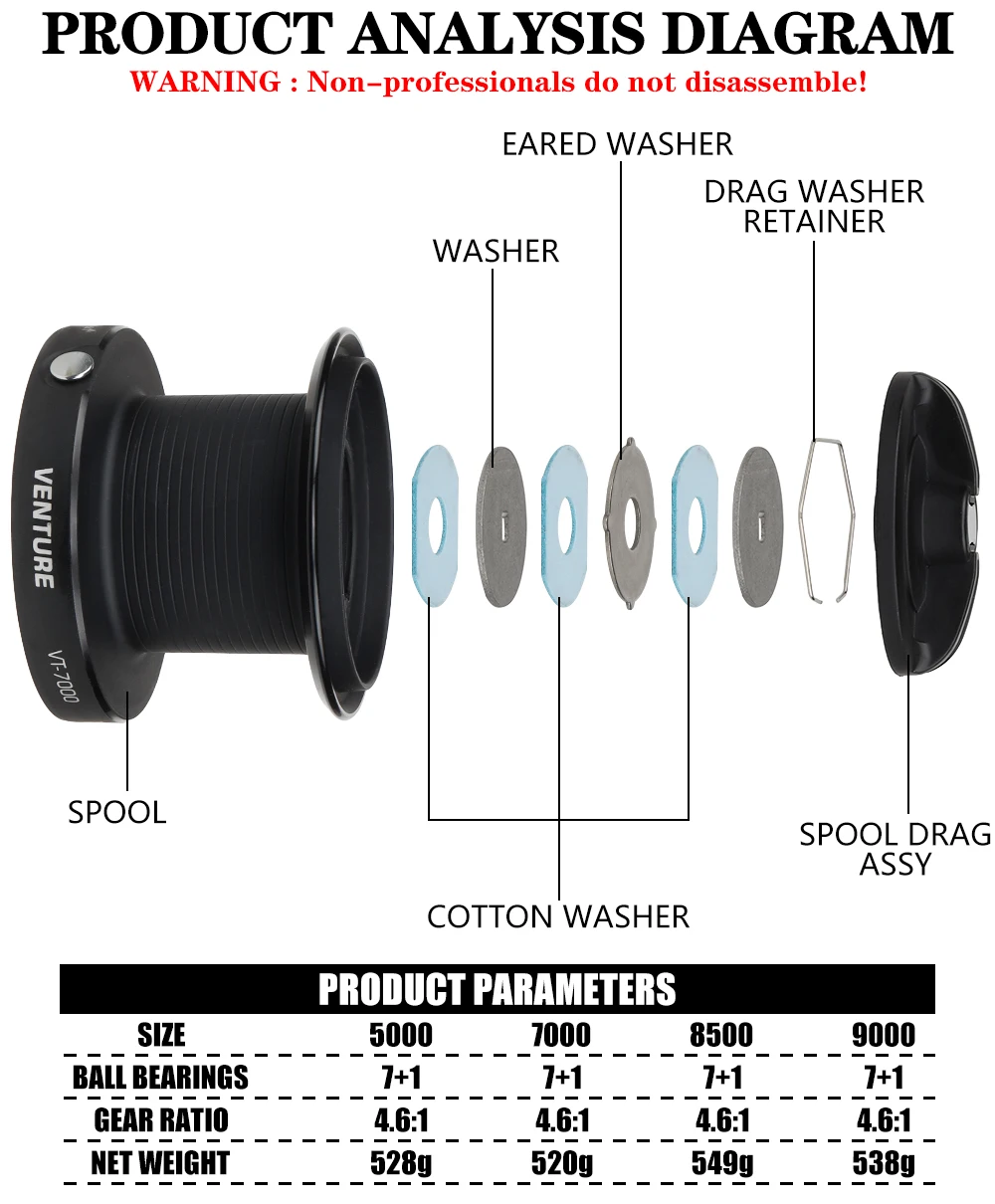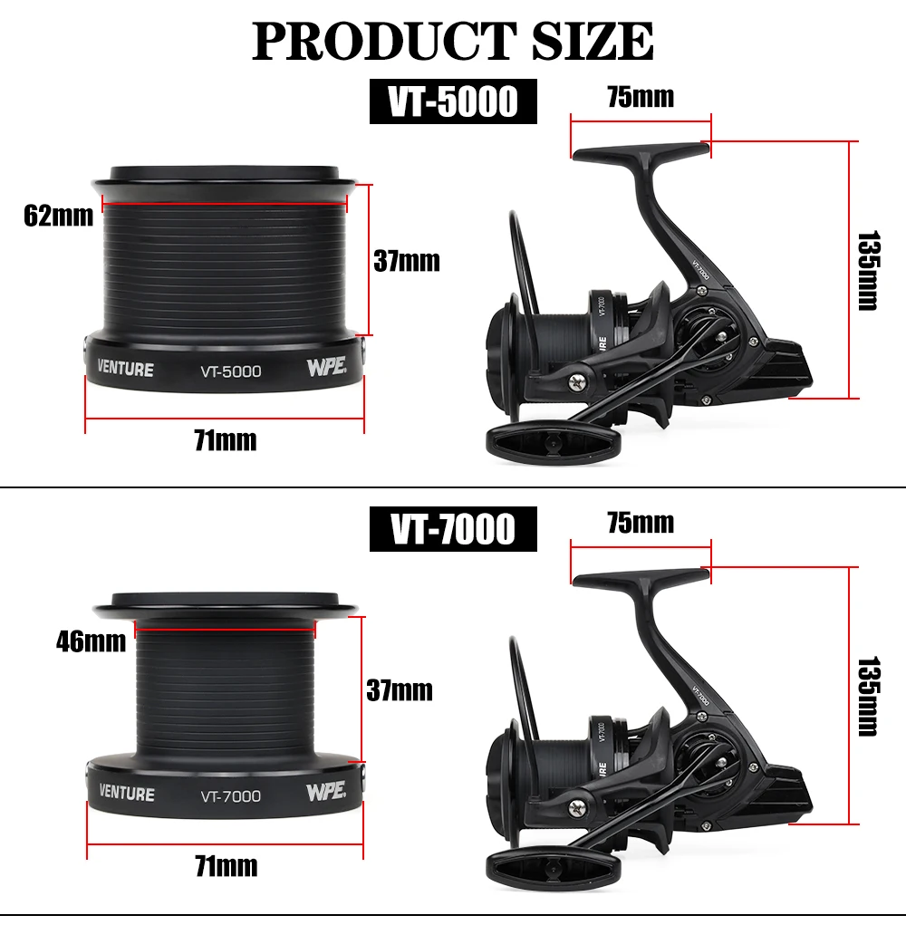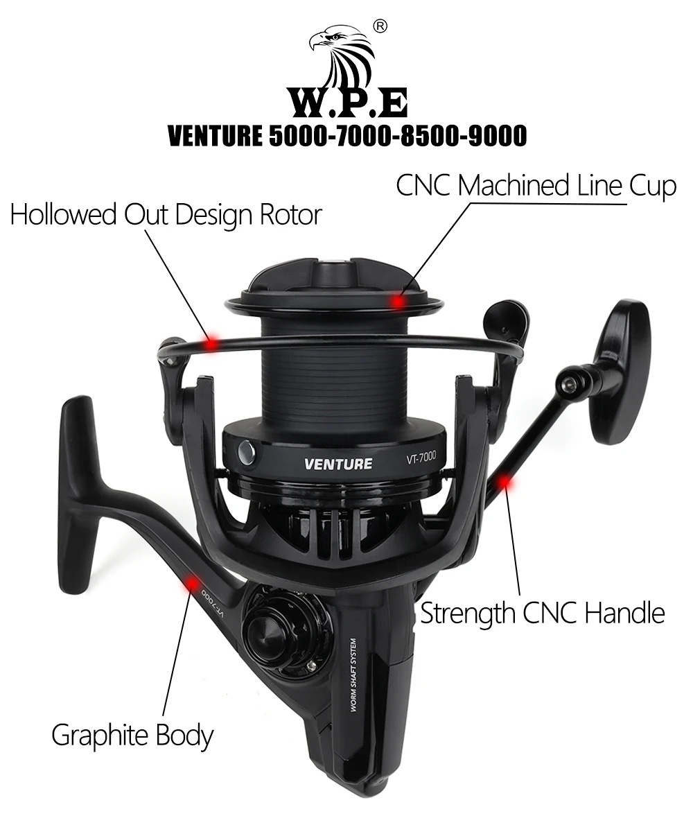 W.P.E VT-carrete de Pesca de carpa, accesorio giratorio de 5000/7000/8500/9000 + 1 7 rodamientos de bolas, alimentador de relación de engranaje 4,6: 1, aparejos de Pesca de carpa