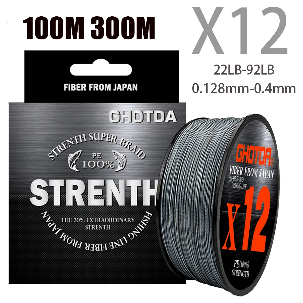X12 100M 300M líneas de pesca trenzadas 12 hebras multicolor multifilamento línea de PE de agua salada 22 25 30 39 50 65 92LB 0,128mm-0,4mm