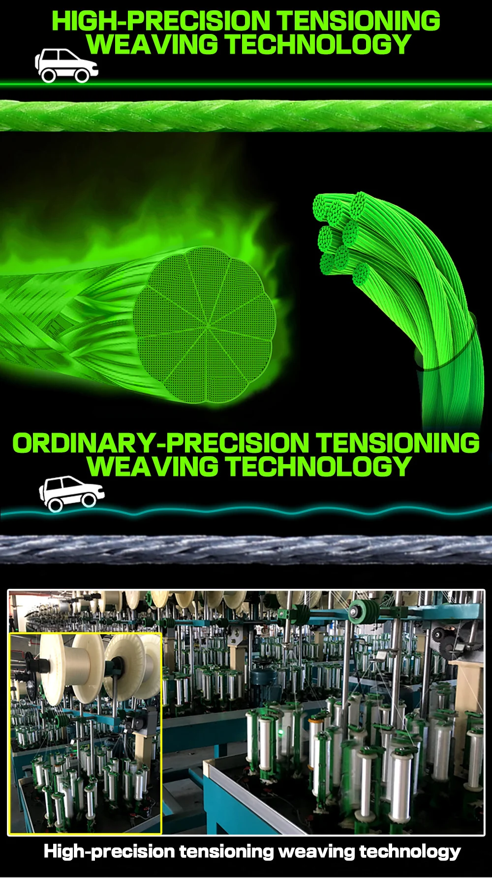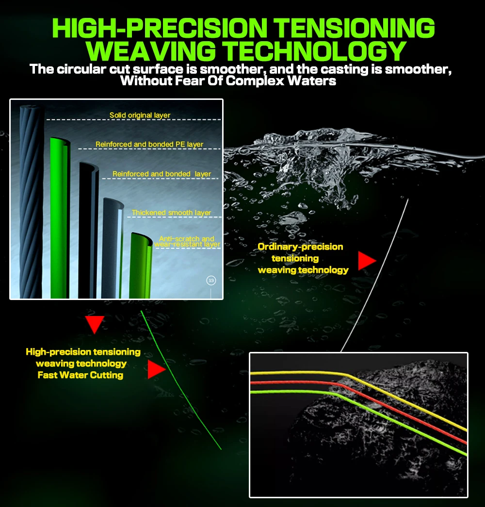 1.Utilice una máquina de alta tecnología para trenzar fibras súper fuertes en una línea trenzada de 4 hebras, lo que garantiza la captura de peces grandes.