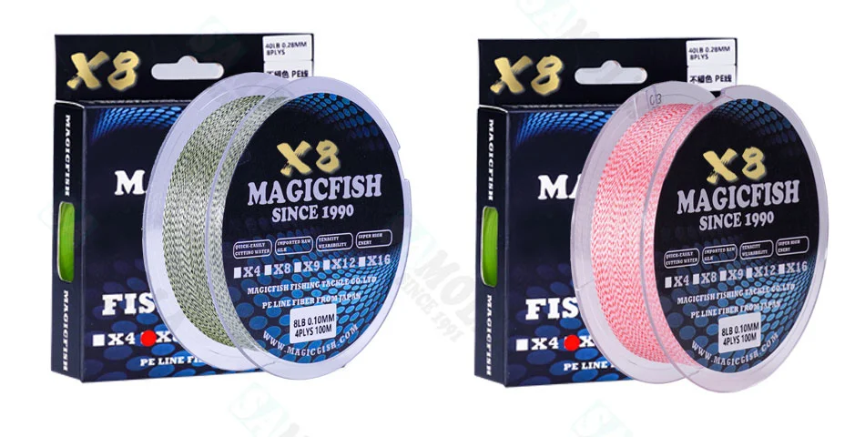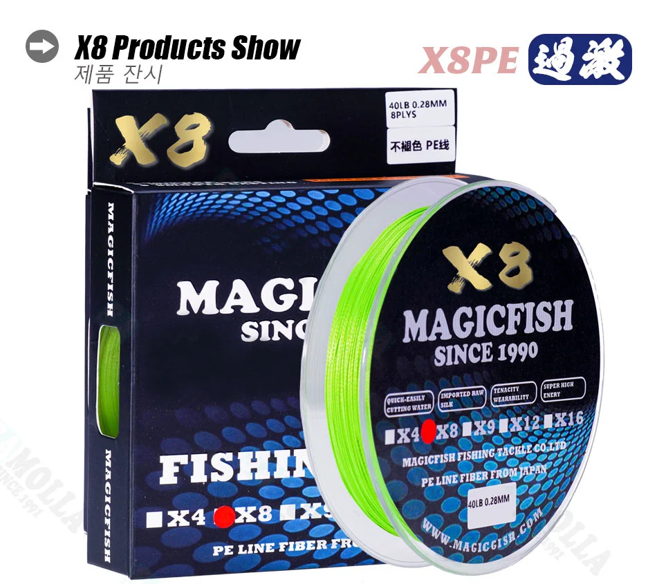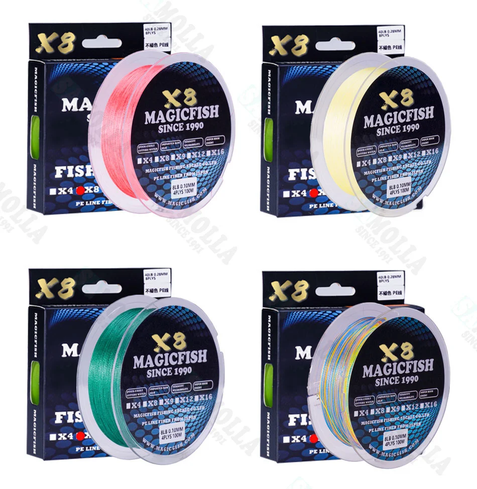1, MAGICFISH Marcas UHMWPE Serie X8 Línea de pesca 100M 8 hebras Línea de pesca trenzada Multifilamento PE Línea 15 -150LB