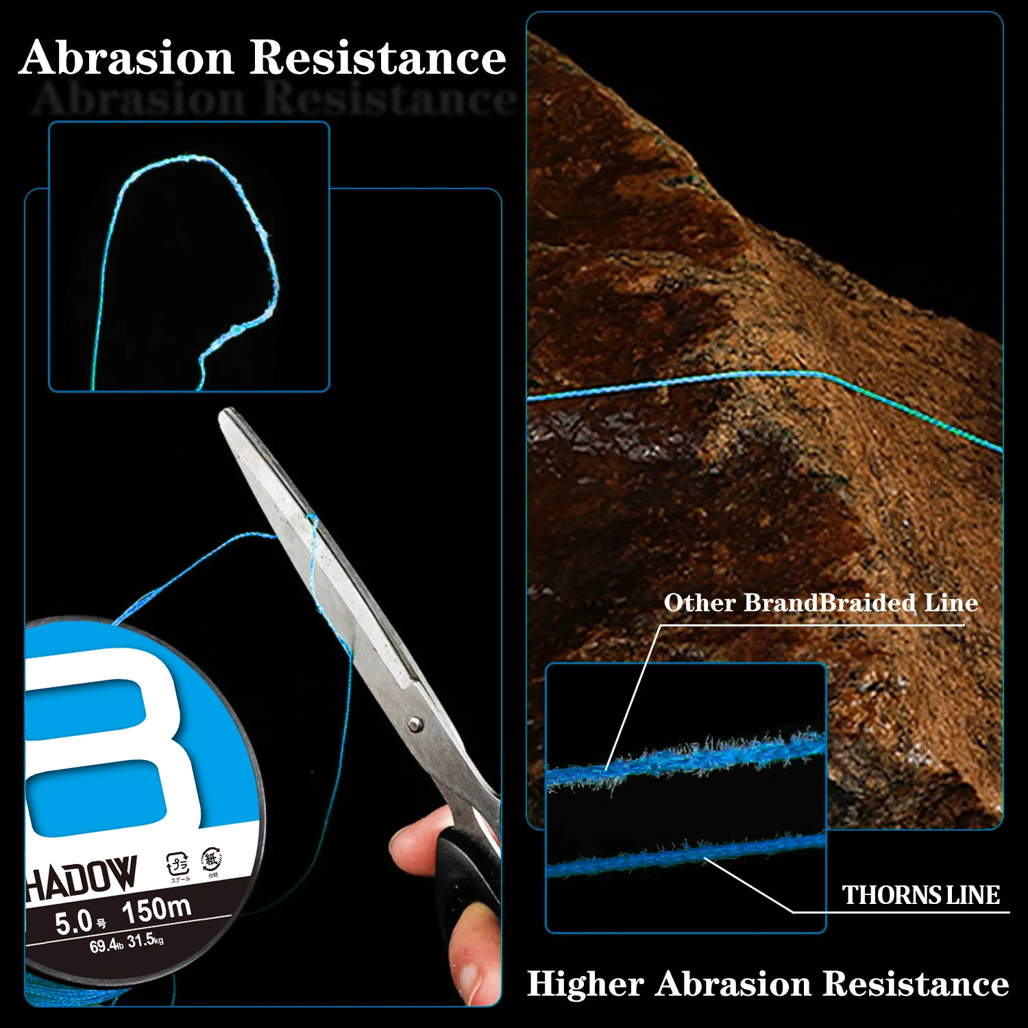 4.RECUBRIMIENTO ESPECIAL Y RESISTENTE A LA ABRASIÓN: El uso de hilo de pescar trenzado con la tecnología de teñido de sección "AB" limita la pérdida de color de "FIERCENESS".y esto garantiza que obtenga un mejor color, vida útil del recubrimiento y mayor resistencia a la abrasión.Este hilo de pescar de PE es adecuado para agua salada y dulce.