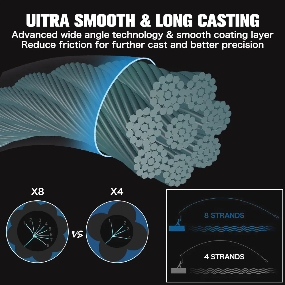 3. ARTESANATOS DE TRENSA SÚPER DELGADO Y PRECISOS: Trenzado de precisión y fibra de alta calidad: Y un perfil más pequeño que da como resultado un mejor lanzamiento y hará que el nudo sea más fácil y más resistente.Es lo suficientemente delgado para que pueda cortar agua más rápido y ayudar a que el cebo llegue a la capa de agua objetivo más rápido que nunca.y sin contragolpes.