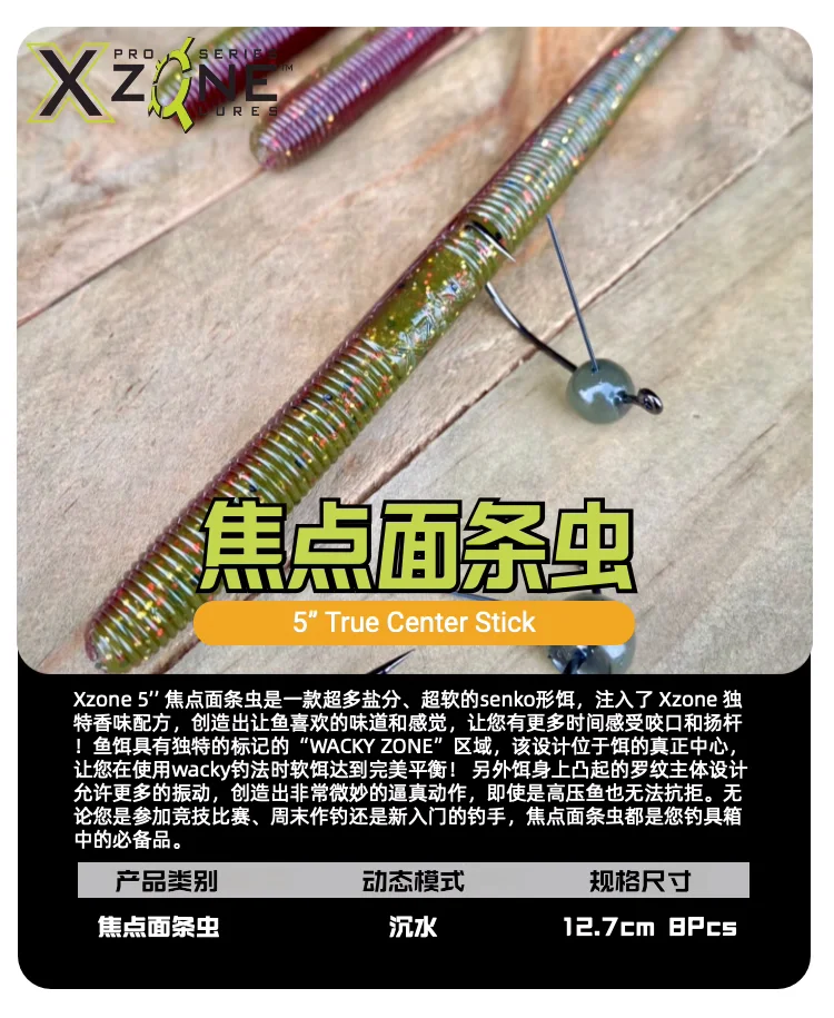 El xzone5 "True Center Stick" es un cebo en forma de Senko súper salado y súper suave infundido con la fórmula de fragancia única de xzone para crear un sabor y una sensación que los peces adorarán. ¡Te da más tiempo para sentir la mordida y levantarte! El cebo tiene un único. El área marcada "WACKYZONE" se encuentra en el verdadero centro del cebo, lo que le permite lograr el equilibrio perfecto del cebo blando cuando se utiliza el método de pesca wky. Además, el diseño del cuerpo de costilla elevado del cebo permite más vibración, creando movimientos realistas muy sutiles que incluso los peces de alta presión no pueden resistir. Ya sea que esté compitiendo, pescando los fines de semana o un nuevo pescador, el gusano de fideos Focus es el complemento perfecto para su caja de aparejos