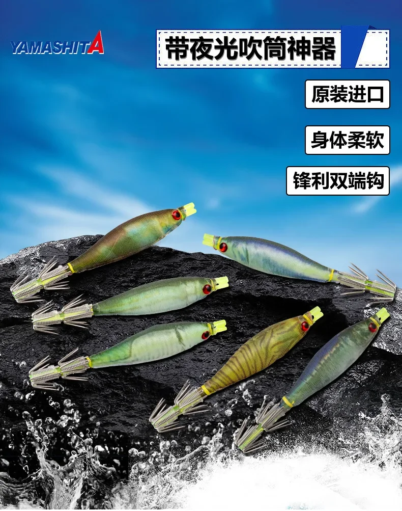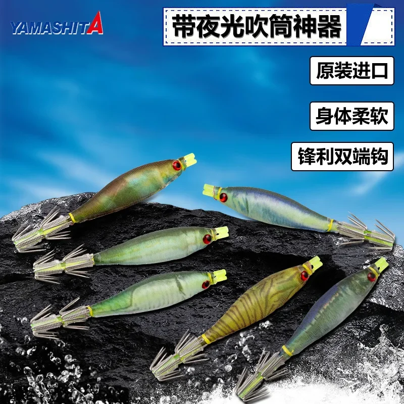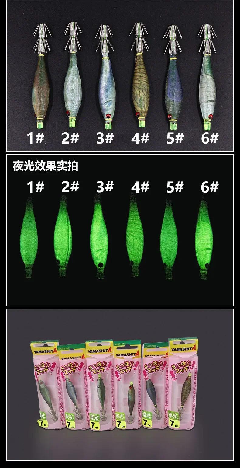YAMASHITA-anzuelo de pesca de calamar, cebo especial para pesca de calamar, luz nocturna, tambor, 7cm, 6 colores, Japón, nuevo