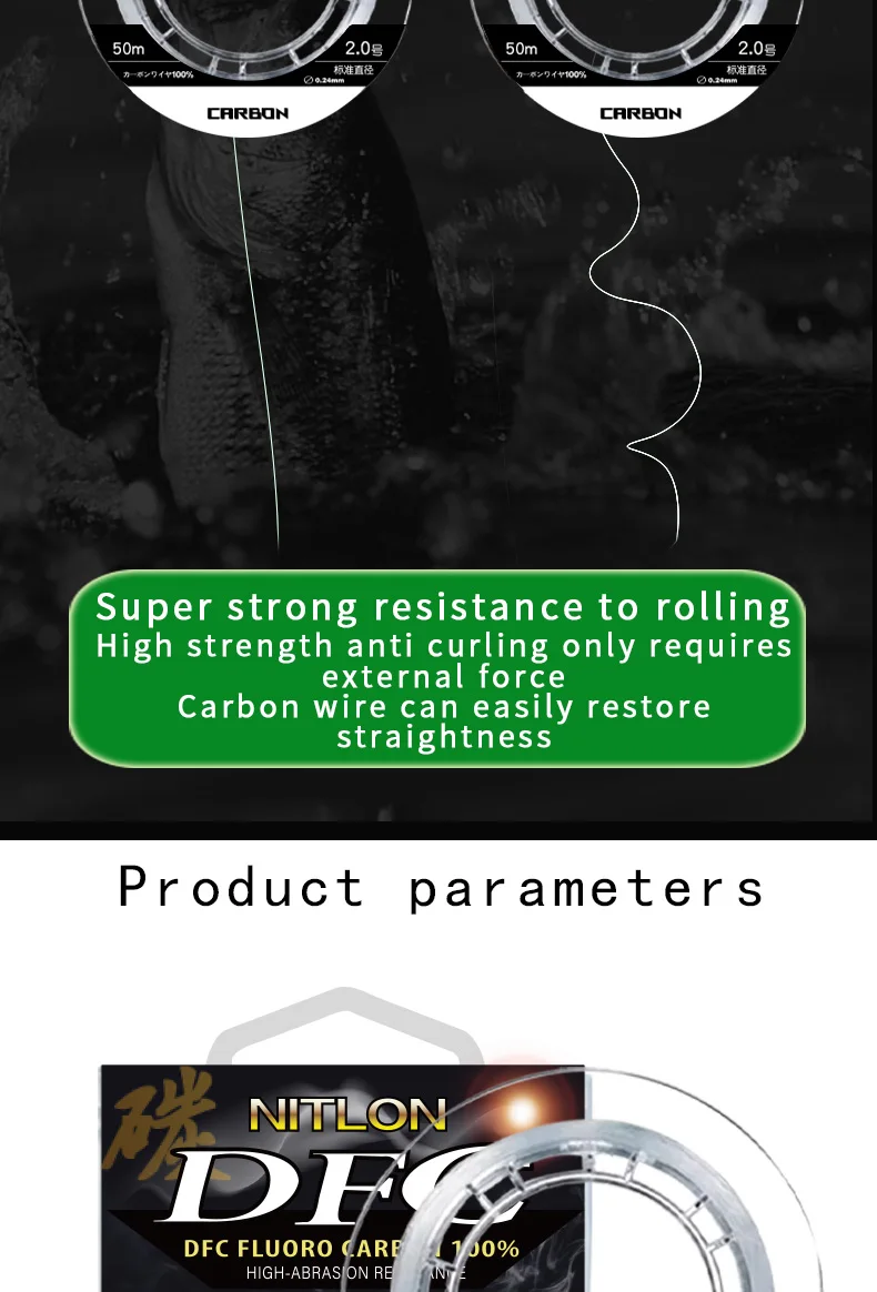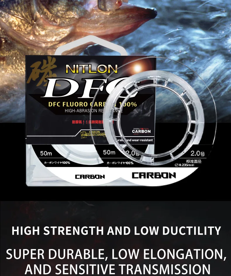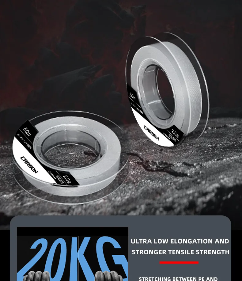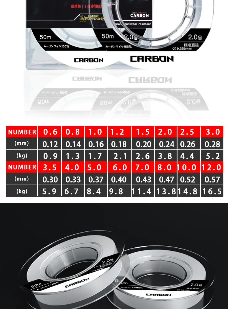 YGKX-sedal de pesca con revestimiento de fluorocarbono, hilo líder de monofilamento de fibra de carbono, accesorios para pesca de carpa, 50M, 100M