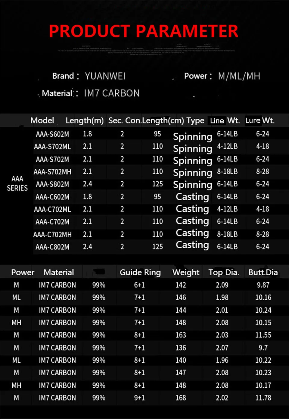 YUANWEI, caña giratoria, caña de fundición, 2 segundos, 2,4 m/6-14lb M, señuelo de carbono de potencia, cañas de pescar, Pesca Olta, palo de Pesca, caña de pescar Baitcasting
