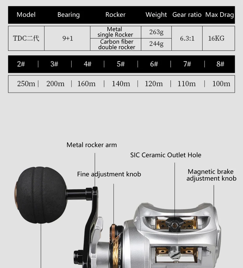 YUBOSHI-carrete de carbono ligero para Baitcasting, accesorio de repuesto de 9 + 1bb, doble balancín, para pesca, TDC3000-Series