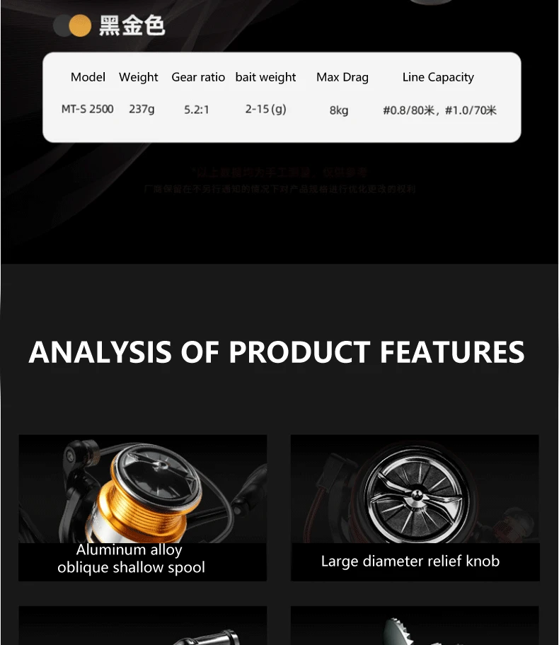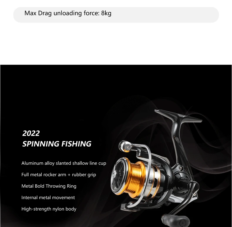 YUBOSHI-carrete de pesca de aleación de aluminio, serie 2500, alta velocidad, 8kg, velocidad máxima de arrastre, Ratio de engranaje de rueda giratoria 5,2: 1