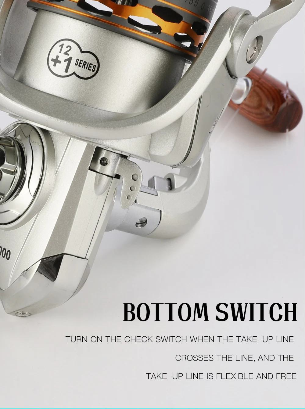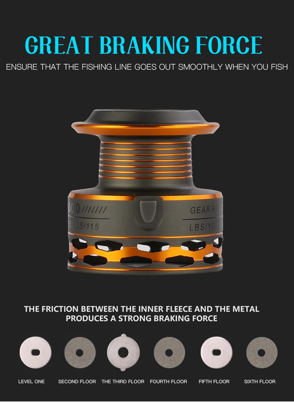 YUBOSHI-carrete de pesca giratorio con carrete de repuesto, serie 1000-7000, arrastre de 6-10KG, 5,2: 1, carretes de pesca de carpa