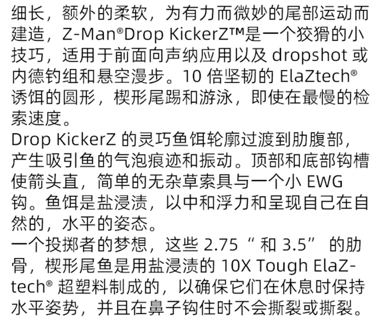 Z-Man DROP KICKERZ Swingtail T-tail pez cebo suave señuelo falso