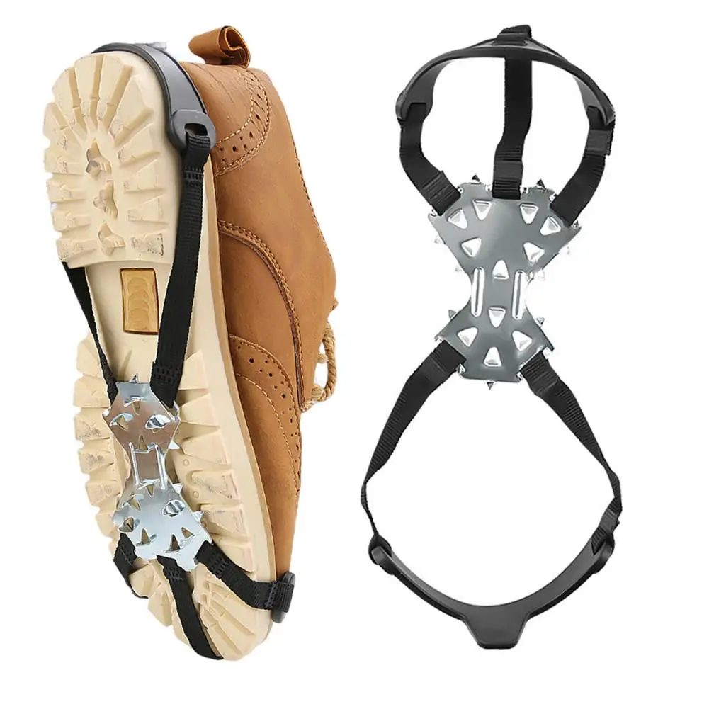 Experimente caminar seguro con estos crampones versátiles.Diseñados para brindar comodidad, se adaptan fácilmente a varios tipos de calzado y brindan una sólida garantía contra resbalones.Ideales para terrenos helados, nevados o embarrados, estos crampones ofrecen un efecto antideslizante eficaz para montañismo, escalar nieve o caminar todos los días.El exclusivo diseño de 11 dientes garantiza un excelente agarre y estabilidad al penetrar profundamente en el suelo.