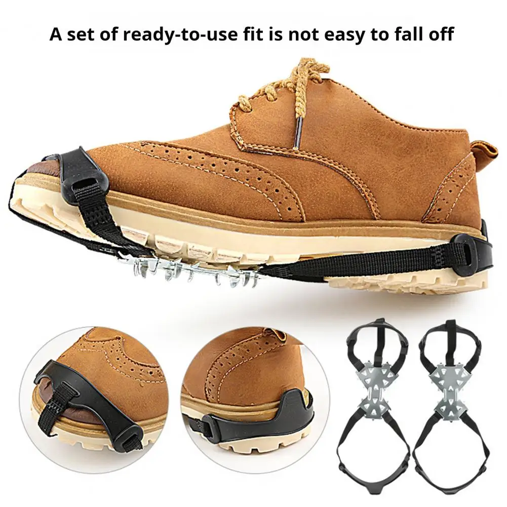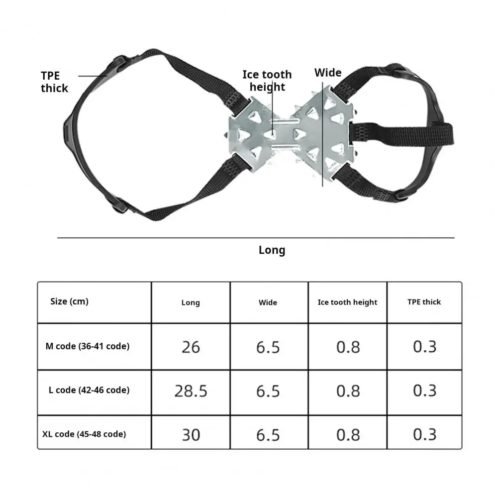 Seguridad mejorada: el diseño del crampón de 11 dientes penetra profundamente en el suelo, ofreciendo un agarre excepcional en el hielo, la nieve y los terrenos embarrados.Disfrute de la estabilidad y la confianza en diversas condiciones resbaladizas.