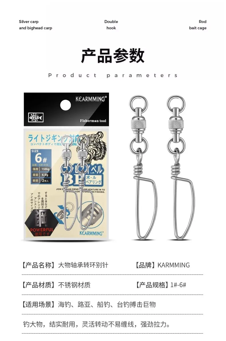 Zee Vissersboot Vissen Roestvrij Staal Reliëf Extra Sterke Gebogen Pin Lager Swivel Diepzee Slepen Vissen Connector