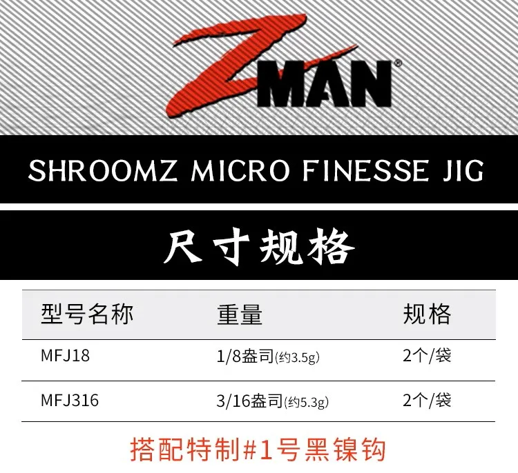 ZMAN FINESSE JIG Grupo de plástico importado de Estados Unidos, colgante de plomo pequeño, cebo de señuelo JIG de pesca fina