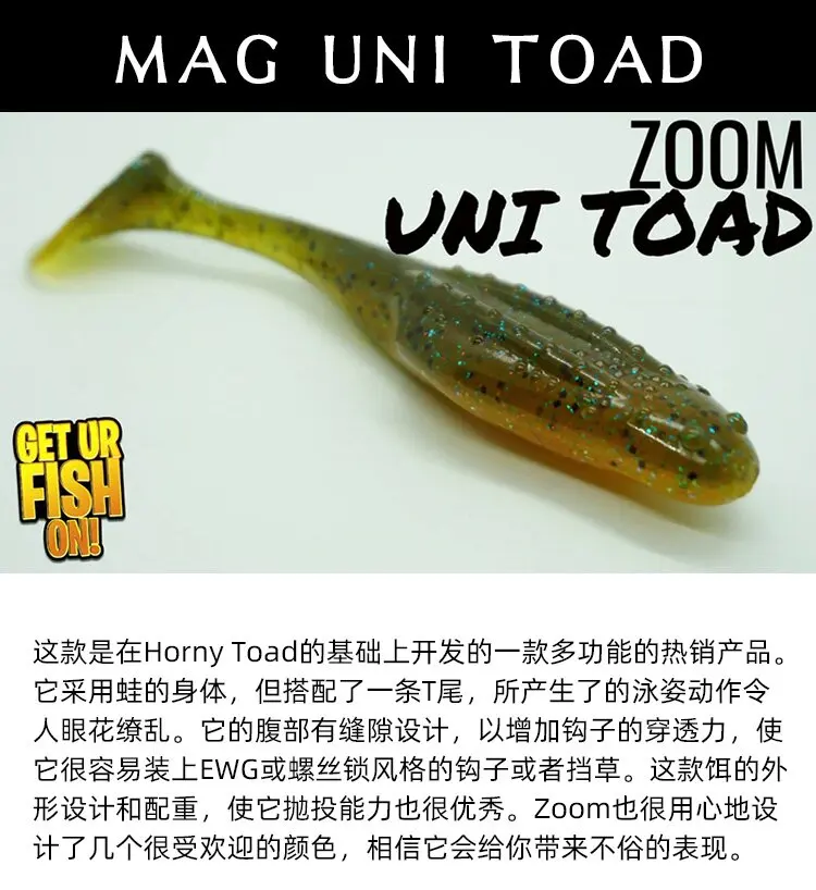 ZOOM US Imported Mag Uni Toad 4 pulgadas cola en T rana perca señuelo de rana cebo suave rana de obstáculo de Texas
