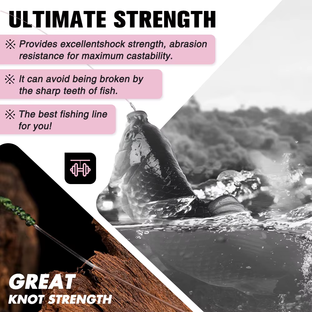 4•Línea de fluorocarbono más fuerte: los diámetros de la línea líder de recubrimiento de fluorocarbono ZUKIBO son menos que otras líneas de pesca Copolímero de marca u otras líneas de monofilamento, lo que da como resultado una línea más pequeña y más fuerte que le brinda más capacidad de carrete y mayor profundidad con cebos de buceo.