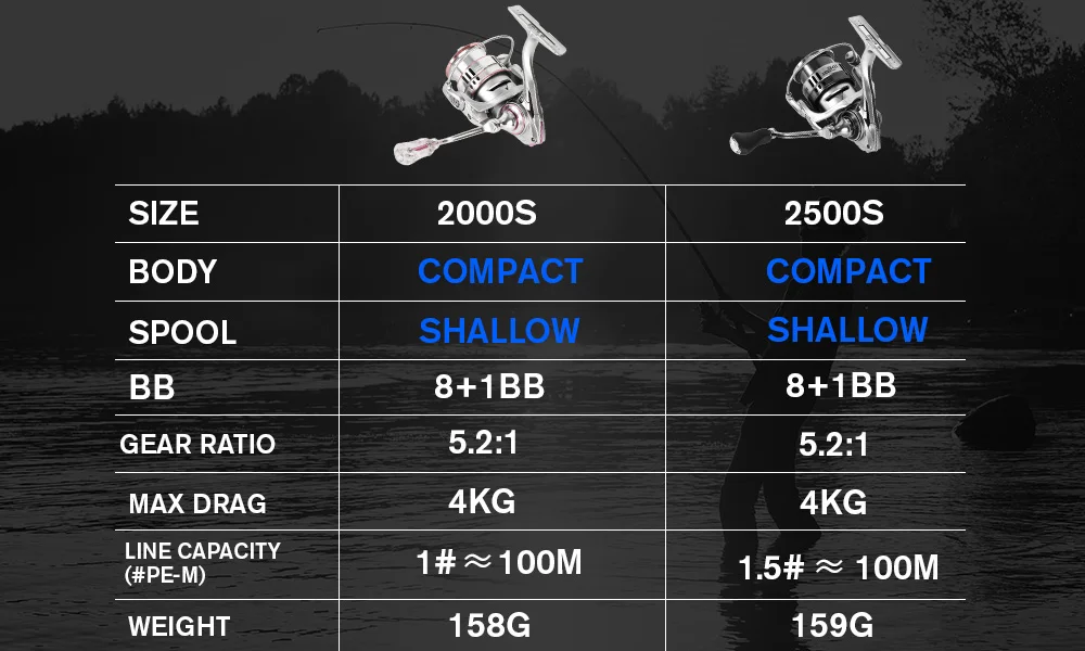 ZUKIBO 158g 초경량 카본 스피닝 릴, 5.2:1 기어비, 8+1BB 알루미늄 핸들, 최대 드래그 4kg, 부드러운 캐스팅 낚시 릴