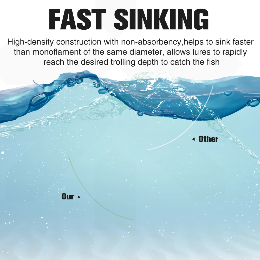 1.100% fluorocarbono, mayor densidad, corta el agua rápidamente y reduce considerablemente la visibilidad en el agua.
