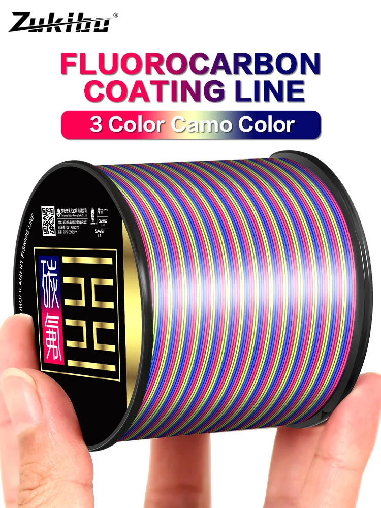 ZUKIBO 3 Color Camo Monofilament Nylon Line High Strength Japan Fluorocarbon Coated Line Low Stretch Faster Sinking Fishing Line