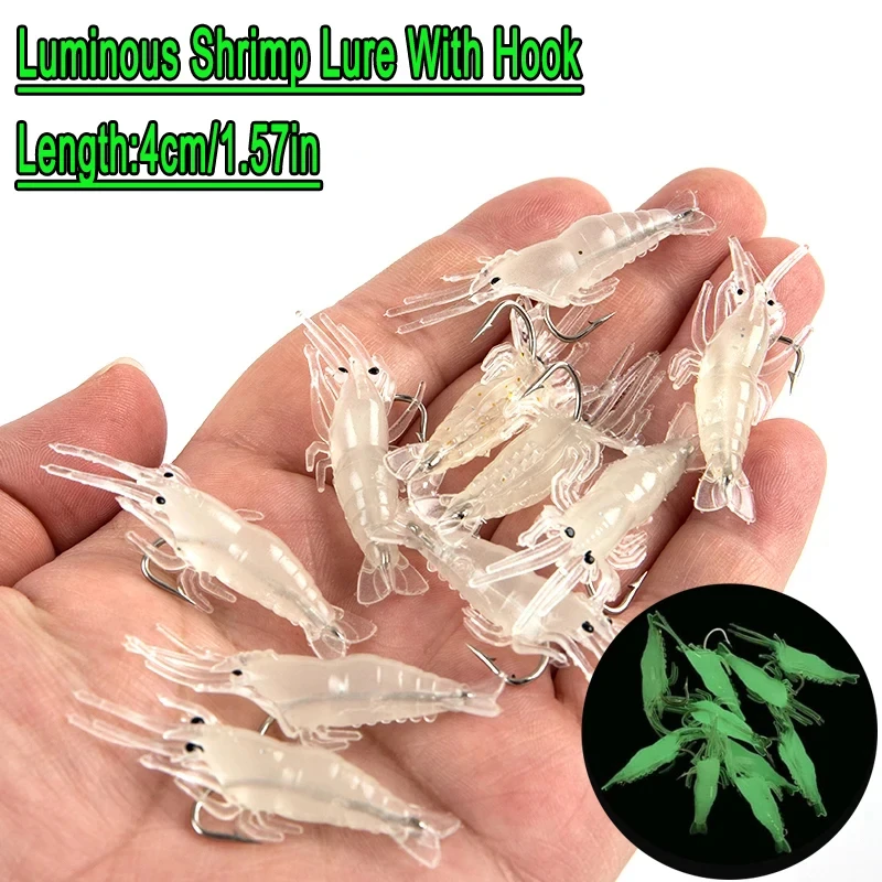ZUKIBO 5/10/20/30 Uds. Señuelo luminoso de silicona suave para simulación de camarón con anzuelo, cebos artificiales, juego de accesorios de pesca