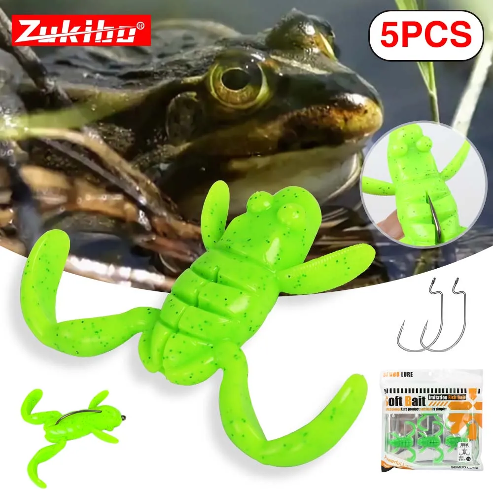 ZUKIBO 5 uds cebo de ranas suaves señuelo de pesca TPE Señuelos de pesca artificiales Swimbait Topwater señuelo flotante cebos para pesca al aire libre
