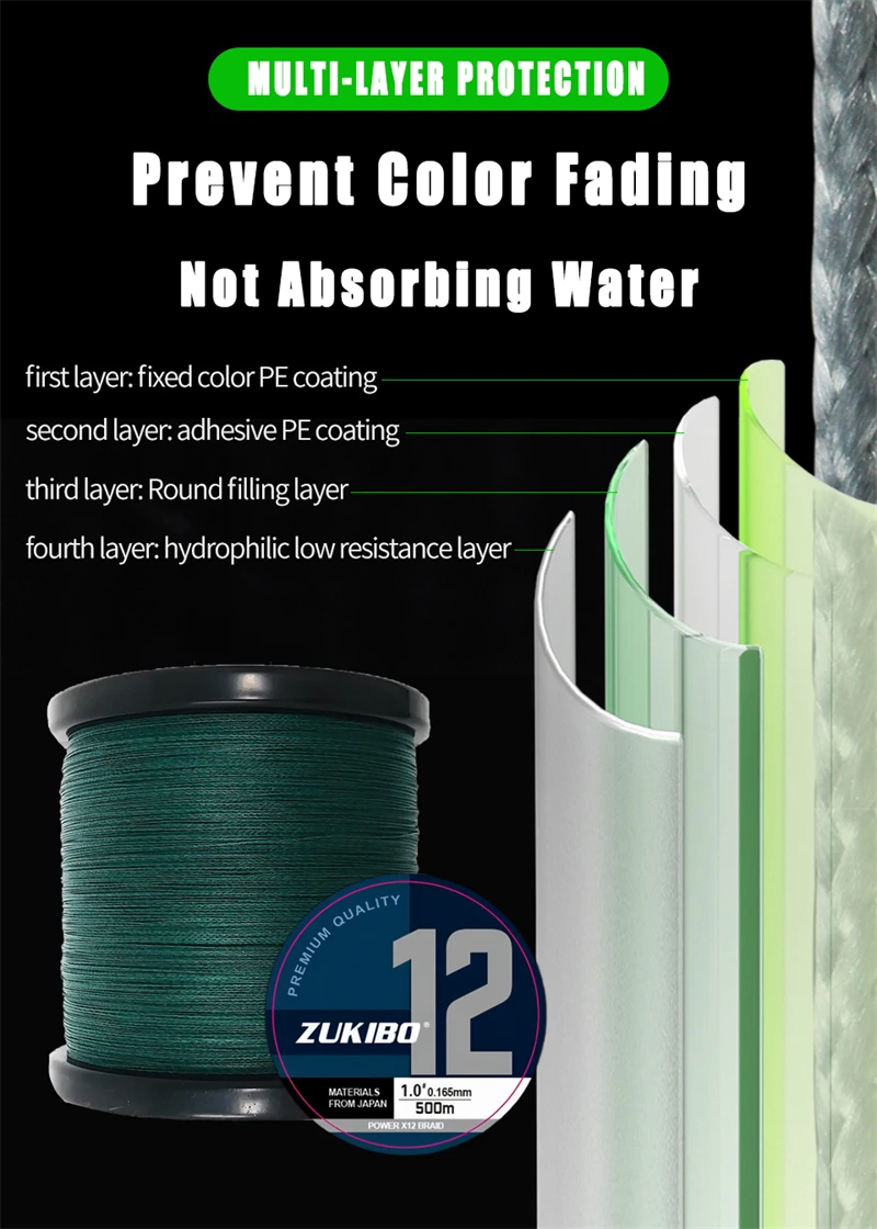 3.ZERO STRETCH: siente cada mordisco y golpe con las líneas de pesca trenzadas de ZUKIBO; con un tejido compacto que te permite sentir lo que está sucediendo bajo el agua, nuestro sedal trenzado profesional es la opción preferida de los pescadores serios que se preocupan por los aparejos de calidad.